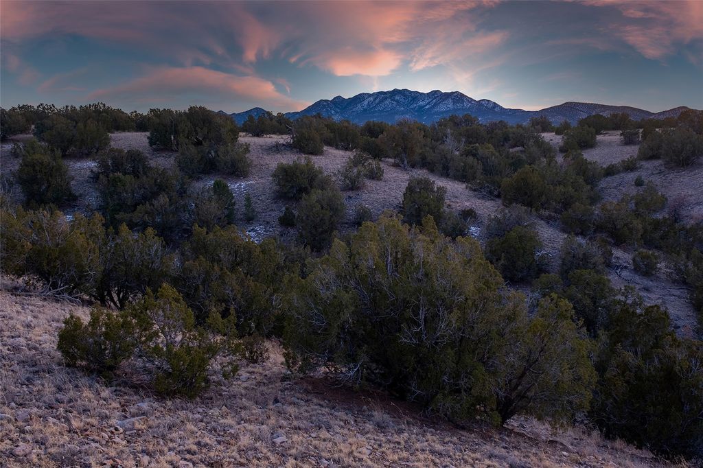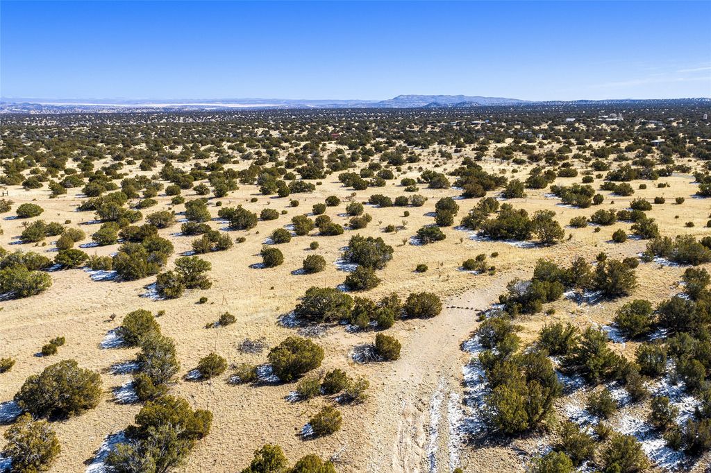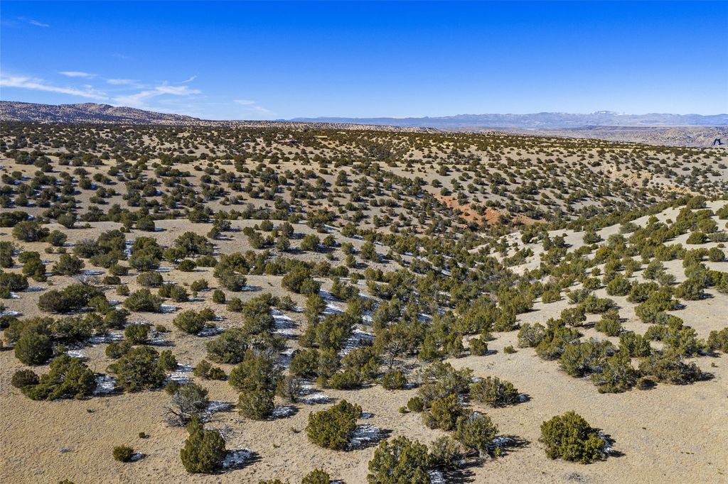 Home to some of the most stunning views available in the Cerrillos area, Lot 7AB is comprised of two legal lots of record for a total of 82.741 acres. A rare opportunity to own this size of acreage so close to Santa Fe, this pristine acreage offers brilliant night skies, privacy and serenity among rolling hills dotted with Juniper and Cedar trees, grassland mesa, and majestic ridge lines. Lower area of the property features Oak Spring, an intermittent spring, once used to water livestock but now a damp area with lush riparian vegetation. Property is beyond a private gated entry and features reasonable covenants with horses and other livestock allowed. Underground power is approximately 475 'from the property down an access and utility easement, nearby properties have good wells. Video link will take you through an aerial tour of the total offering. Just South of Santa Fe off paved Goldmine Road, near the historic villages of Madrid and Cerrillos with restaurants, galleries, general stores and seasonal farmers markets. 20 miles to Santa Fe.