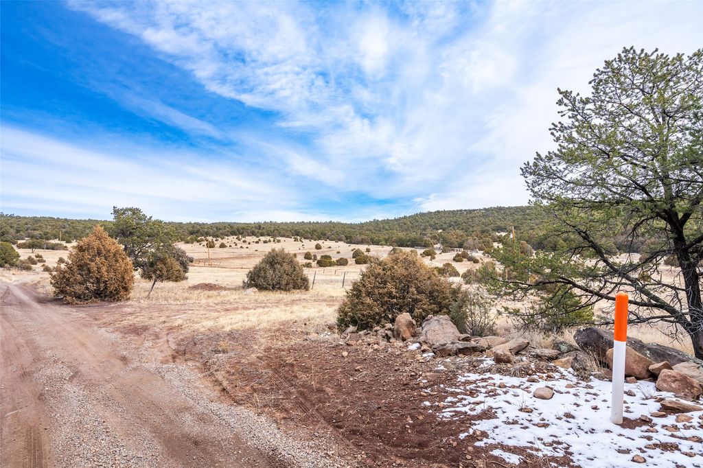 Acres and acres of freedom and wildlife! Purchase this beautiful property in whatever package you prefer ~ Land Only ~ Land and Permitted Plans ~ Land and framed and enclosed home, ready for your personal styles and finishes ~ Land and completed, turn-key home! You get to choose! This property is a total of six legal lots that are part of the Glorieta Mesa Ranch Conservation Easement, which means there are extremely low property taxes ($20.33 total for year 2024!). And to make it even better, the east side backs up to Forest Service Land. There is currently already a well and electric on property near build site. The road has just been refinished. Septic system will need to be installed. Make it your dream sanctuary. Bring your horses, mini cows, ostriches or whatever livestock you raise!