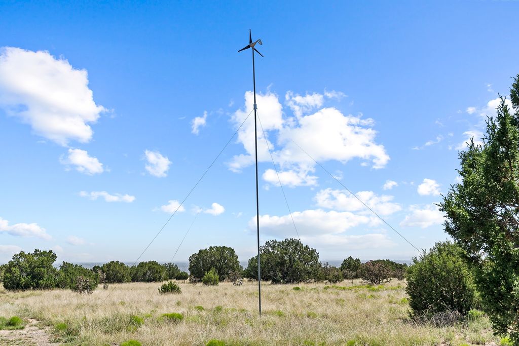 The property includes a storage shed and shipping container, solar shed, wind generator, 9000 gallons of water storage, as well as hookups for an RV. The locationoffers easy access to town on well-maintained roads within a gated community with no HOA. Located just 21 miles from Santa Fe and near dining and entertainment options in Madrid and Cerrillos, this home provides a perfect retreat without compromising comfort or convenience.