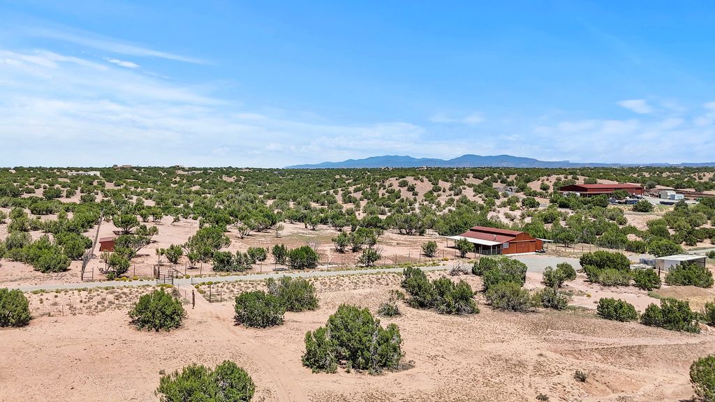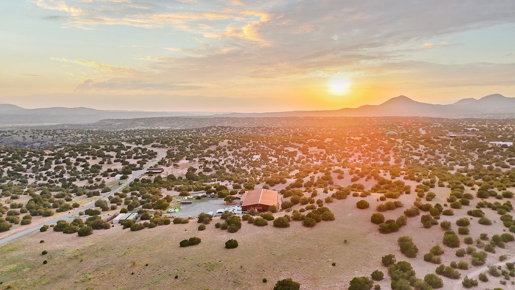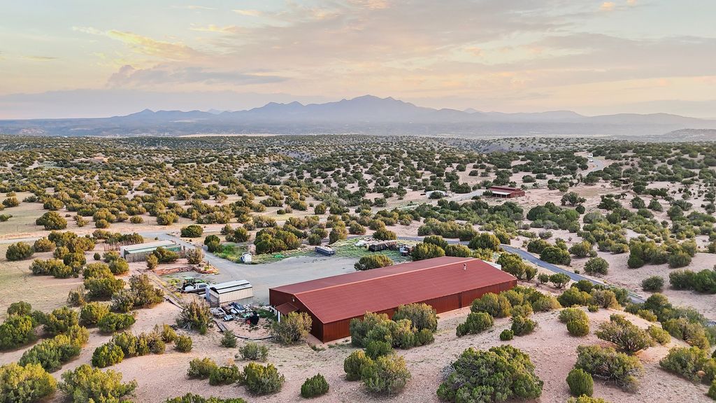 Welcome to this one-of-a-kind property just south of Santa Fe, featuring 364 prime and private acres with some of the best expansive mountain views around! The exceptional acreage consists of three contiguous and separately deeded parcels, providing tremendous versatility and numerous development possibilities for a new owner. The phenomenal 8,000+/- sqft steel-framed and insulated workshop/warehouse (constructed in 2018) is equipped with all one could dream of, including a 2-bedroom, 2-bath living quarters. Additional features include: 220v power, a strong producing well with 11,000 gallon holding tanks, 2 internet boosters, and a reverse osmosis water system, to name a few. There is also a fully-fenced/well-constructed/insulated barn with water and power in addition to a separate shelter for the animals. The unparalleled majestic views of the Ortiz Mountains are truly outstanding. This opportunity is the one you've been waiting for! Come make your dream a reality today by taking advantage of this rare offering.