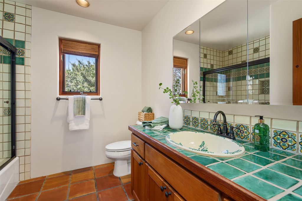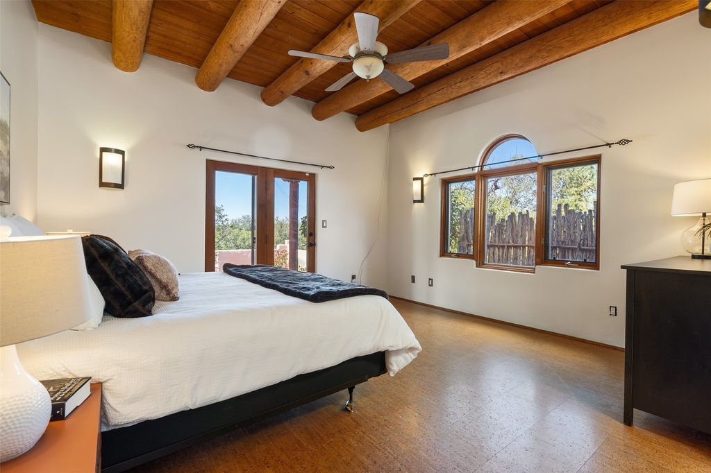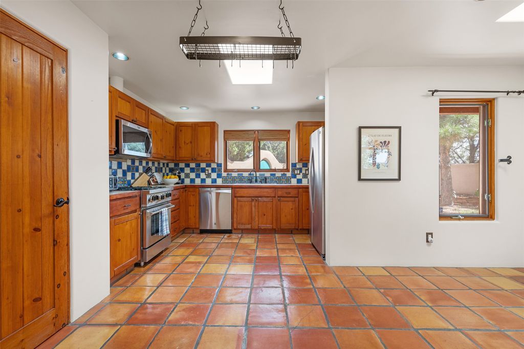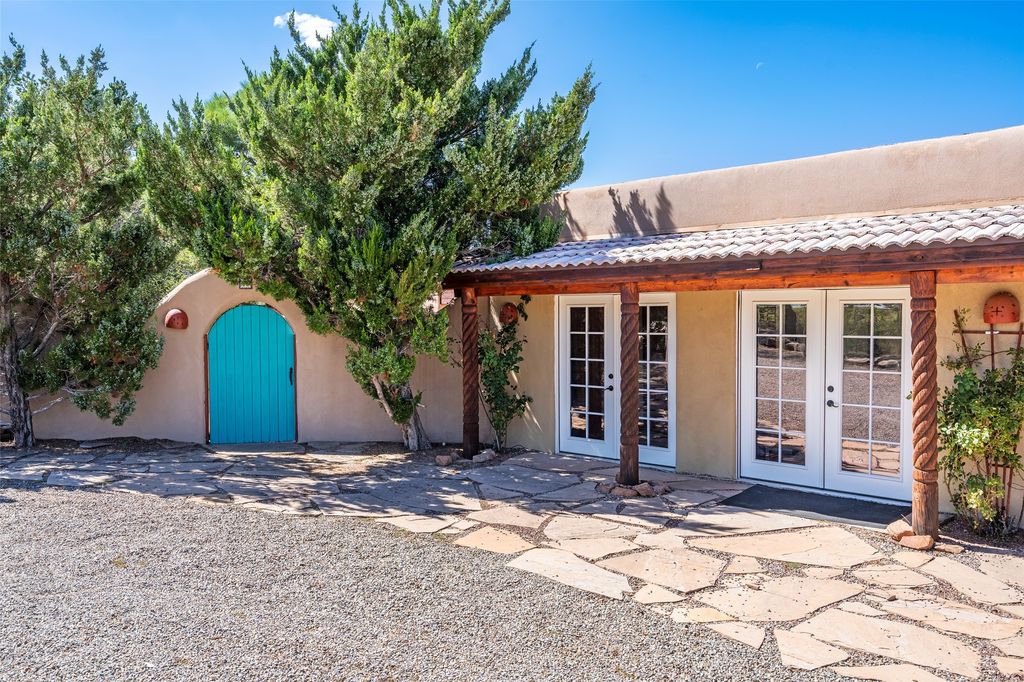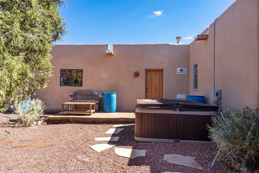 Located in the highly desirable Eldorado community just minutes from Santa Fe, 3-bedroom, 3-bath home perfectly blends classic Santa Fe style with thoughtful modern updates. From its warm Saltillo tile floors to its cork-floored bedrooms"”ideal for comfort and allergy sensitivity"”every detail invites relaxed, functional living. A standout feature of the home is the nearly 1,100 square feet of versatile flex space with its own private entrance"”ideal for a studio, home office, guest suite, or creative retreat. The updated kitchen will impress, featuring a high-end Bluestar gas range, Kenmore Elite refrigerator, and stainless dishwasher. The guest and flex-space bathrooms have also been tastefully renovated, offering both style and comfort. A whole-house water filtration system adds an extra layer of wellness and convenience. Outdoors, mature landscaping frames a private front courtyard and a fully walled backyard oasis, where newly built decks and a relaxing hot tub create the perfect setting for entertaining or unwinding under the stars. For those who value space and storage, the property includes a rare, RV garage"”approximately 25' x 40'"”in addition to 3 additional car bays, offering ample room for vehicles, projects, or recreational gear. Living in Eldorado means access to miles of scenic walking paths, a welcoming community center, pool, tennis courts, and more"”all within a vibrant neighborhood that embodies the best of Santa Fe living. This home is more than just a place to live"”it's an inviting canvas for your lifestyle.
