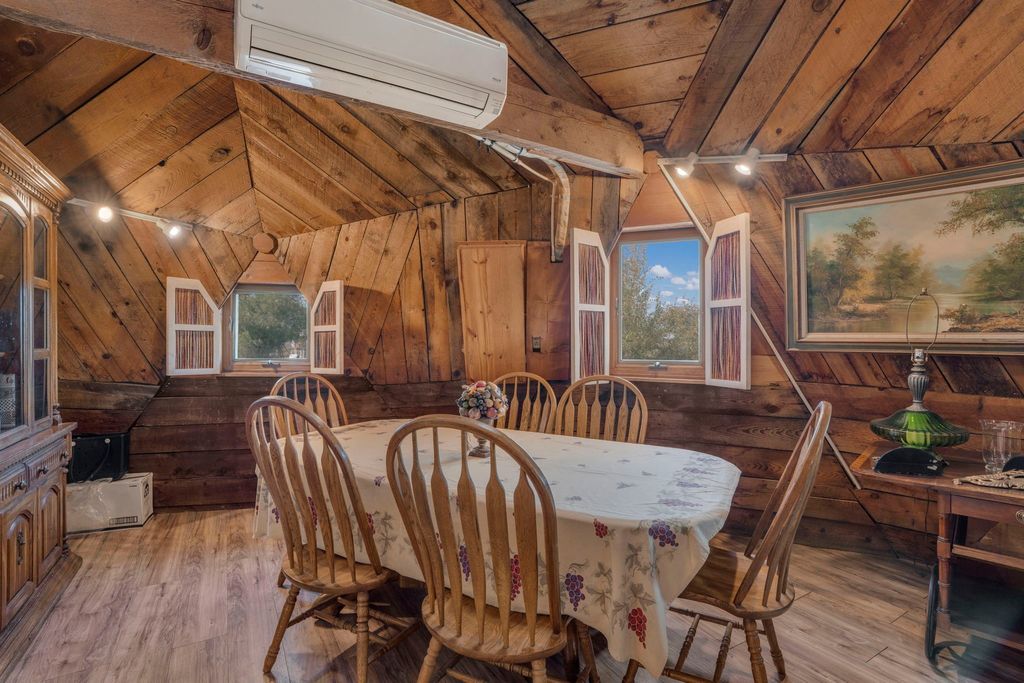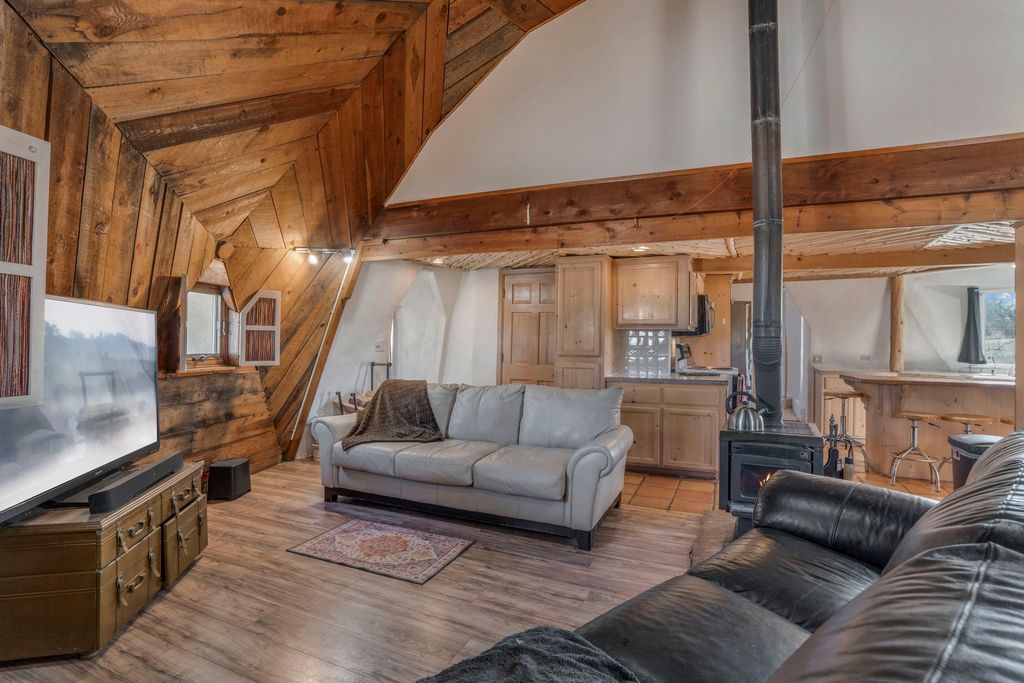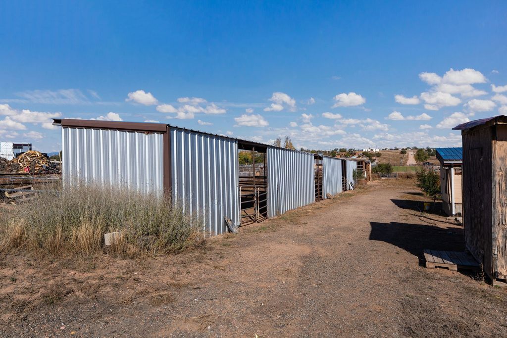Welcome to your own slice of the Southwest "” a 1,664-square-foot largely adobe home built around a one-of-a-kind geodesic dome, full of character and heart. Set on 2.5 peaceful acres with sweeping Sangre de Cristo mountain views, this property offers the best of rural living, combining comfort, sustainability, and the beauty of the high desert. Step inside and feel the warmth of handcrafted adobe walls, the wooden geodesic dome, exposed vigas, and natural wood and Saltillo tile floors. The primary bedroom features a corner kiva fireplace, creating the perfect cozy retreat on cool evenings. The spacious kitchen is well equipped with stainless steel appliances and plenty of room for gathering, cooking, and sharing meals made from your own garden bounty. The home stays comfortable year-round with a mini-split, woodstove, and solar hot water, while a greywater irrigation system helps nourish your land. Outside, you'll find everything you need for a working mini-ranch or hobby farm "” stables for eight horses with water and electricity, an arena, and ample storage for tack, tools, and feed. The private well ensures reliable water, and there's space to expand your gardens or add more animal pens. Currently, the homestead is happily shared with turkeys, chickens, and mini goats, all thriving under the wide New Mexico sky. This property isn't just a home "” it's a lifestyle. A peaceful haven where you can slow down, breathe deep, and live in rhythm with the land.