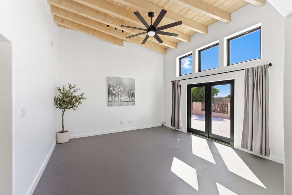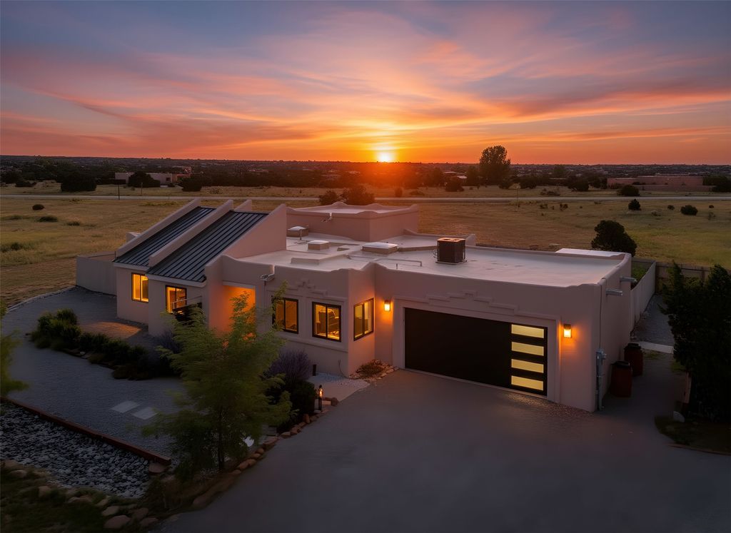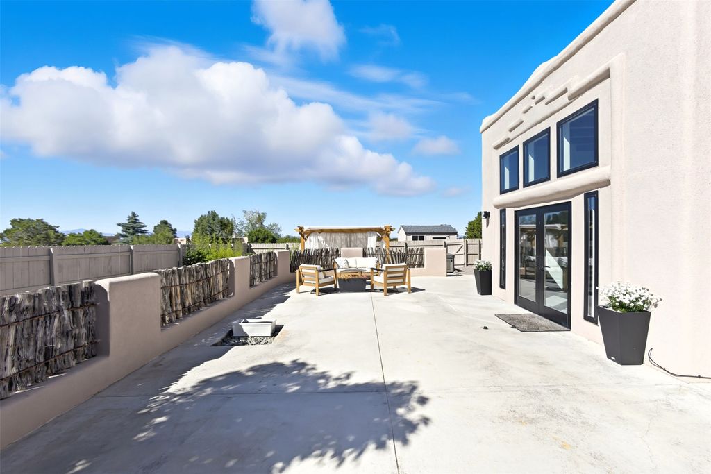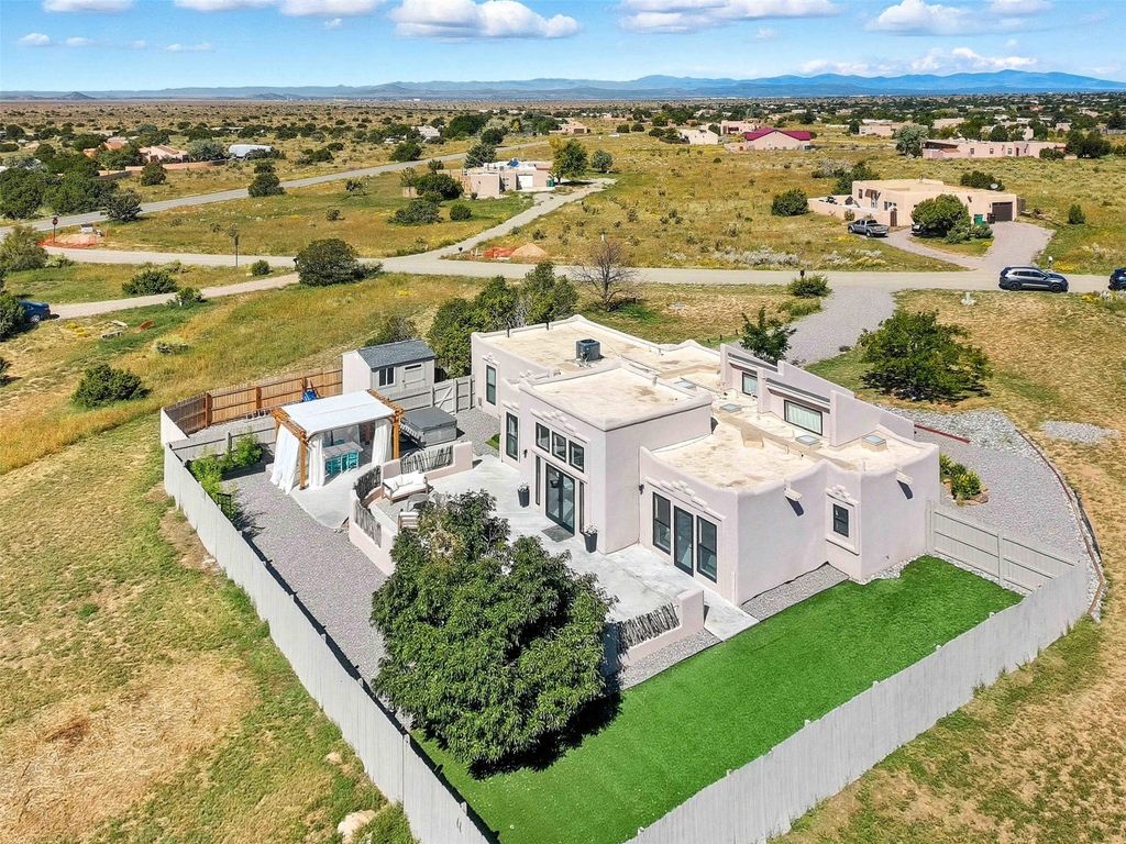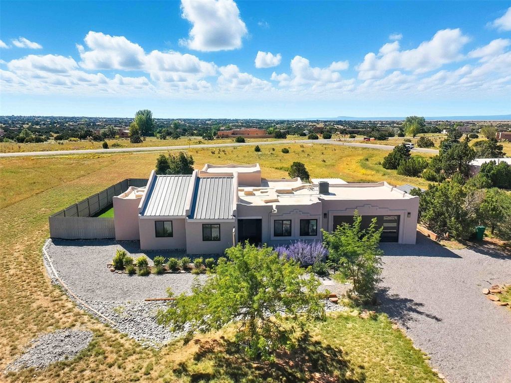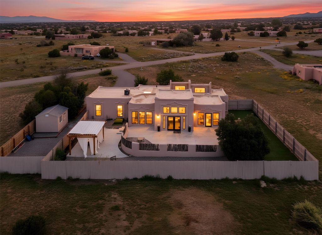 Set on 1.4 acres, this property offers both space and privacy. Inside, you'll find light-filled, inviting spaces perfect for everyday living and entertaining. Outdoors, enjoy al fresco dining beneath the Santa Fe skies, a fenced yard with a lush grass area ideal for pets or relaxation, and a storage shed for convenience.