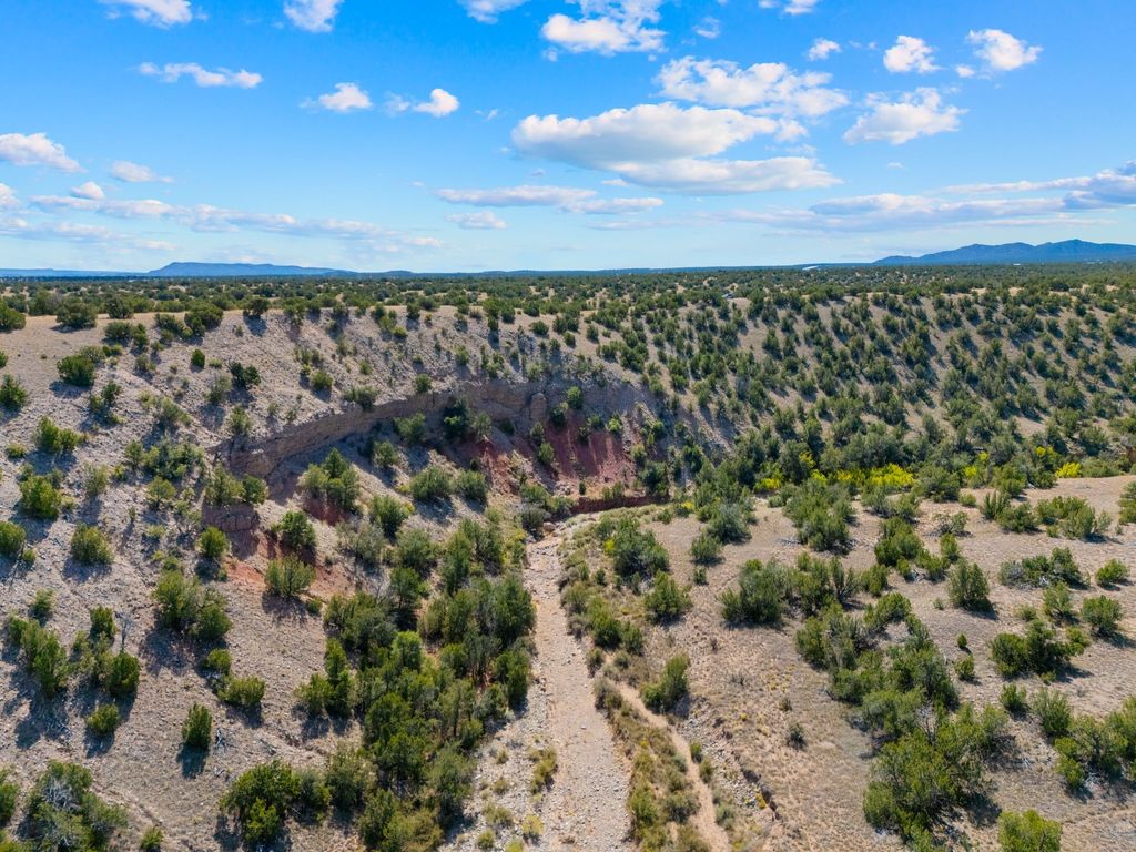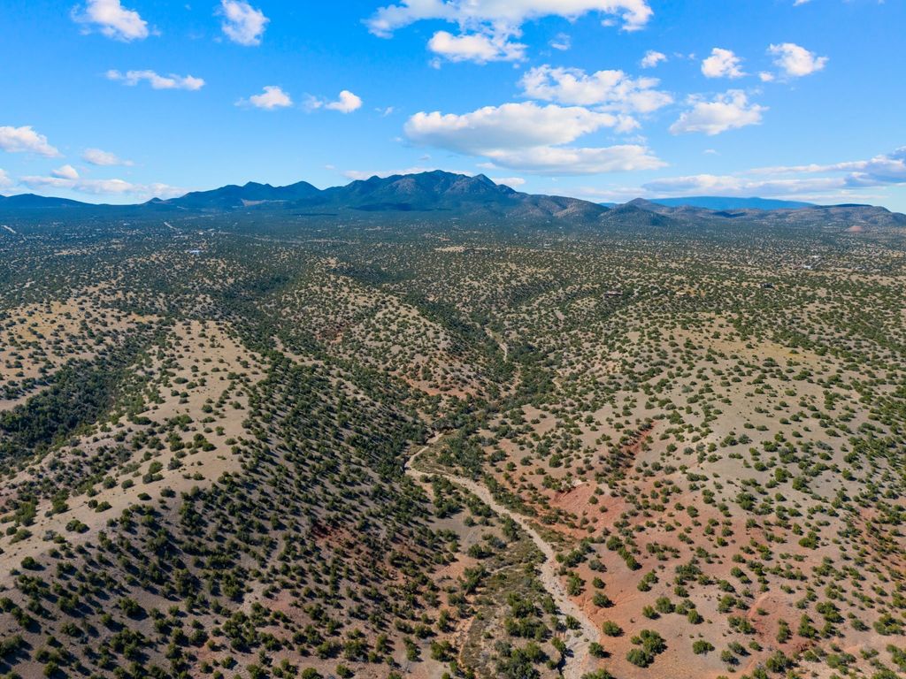 82.7 stunning acres offer unmatched quiet and privacy at the north end of the gorgeous Grenfell Ranch. The lot is comprised of pristine grassland and gentle hills, atop the mesa for stunning 360-degree views of the Cerrillos Hills, Ortiz and Jemez mountains and surrounding valleys. Additionally, the parcel includes the gorgeous west canyon, offering serene hiking and horseback riding along the arroyo. Legal easement access from Rancho De Shama Road runs to the south end of the parcel and potential build site.