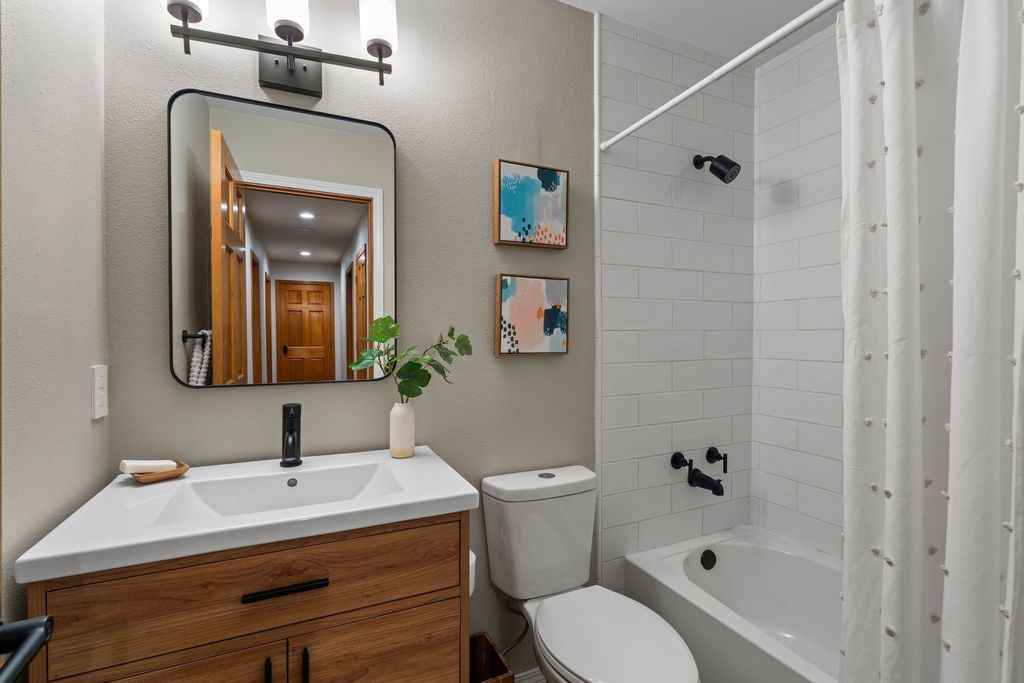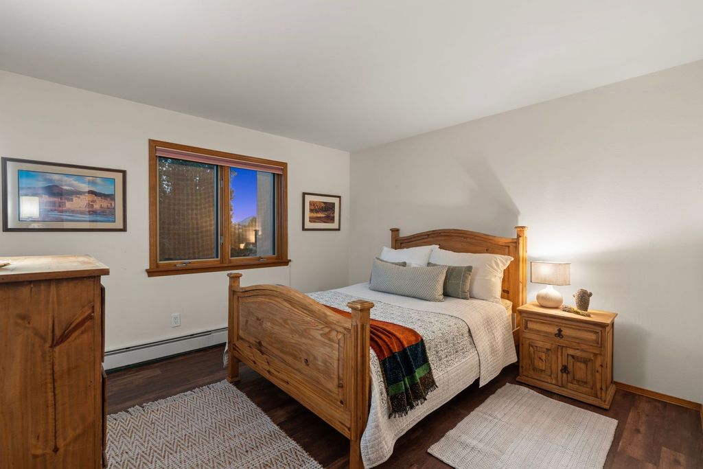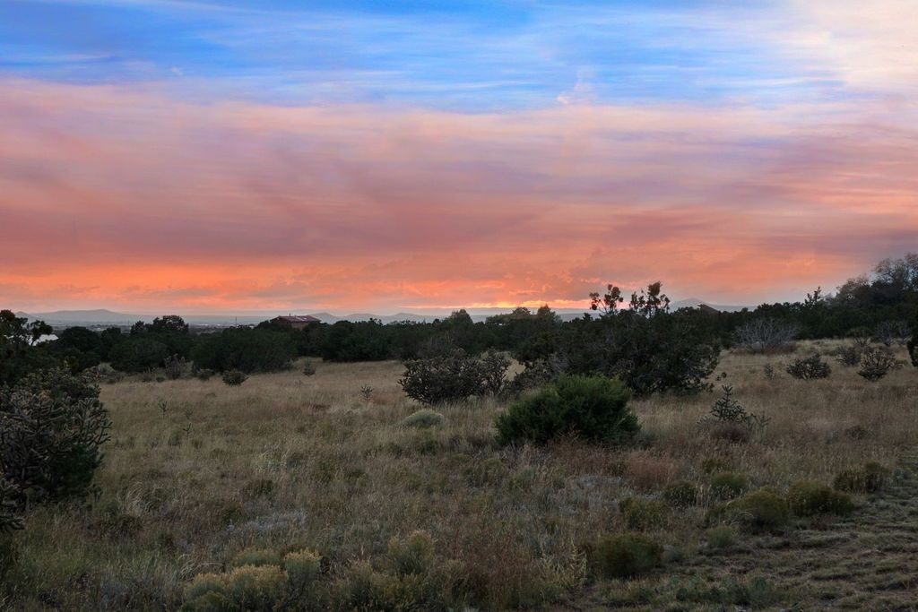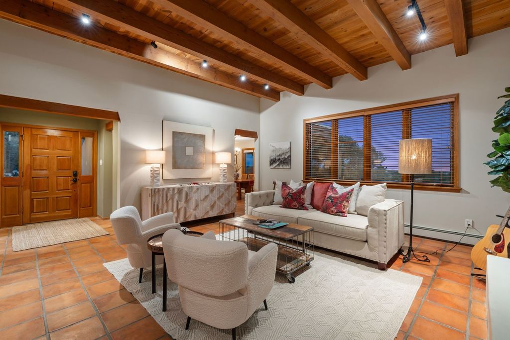 Enjoy mountain views and unforgettable sunset skies from this single-level home in desirable Arroyo Hondo West. Designed to capture natural light and scenic vistas, this inviting residence blends Santa Fe charm with modern updates. The spacious living room features soaring beamed ceilings, a classic fireplace, Saltillo tile floors, warm wood trim and built-in shelving for an open yet welcoming feel. The updated kitchen offers butcher block counters, stainless appliances, upgraded lighting and a wine fridge, flowing easily into the dining and den areas that open to a serene patio. The primary suite is a peaceful haven with a walk-in closet, double vanity and step-in shower. Set on expansive acreage with sweeping views, the property invites outdoor living, gardening or future expansion. Located in a quiet, established neighborhood just moments from the Rail Trail and about 15 minutes from the Plaza, this home combines tranquility and convenience.