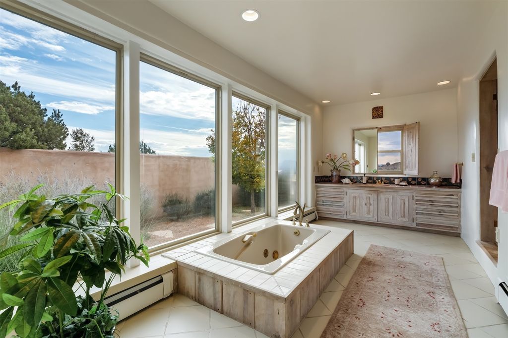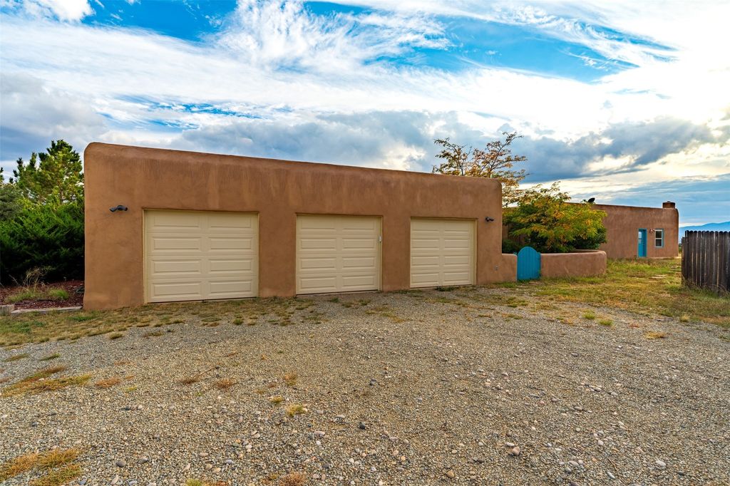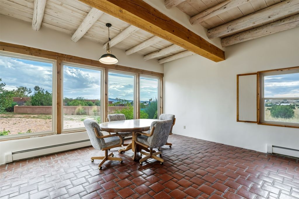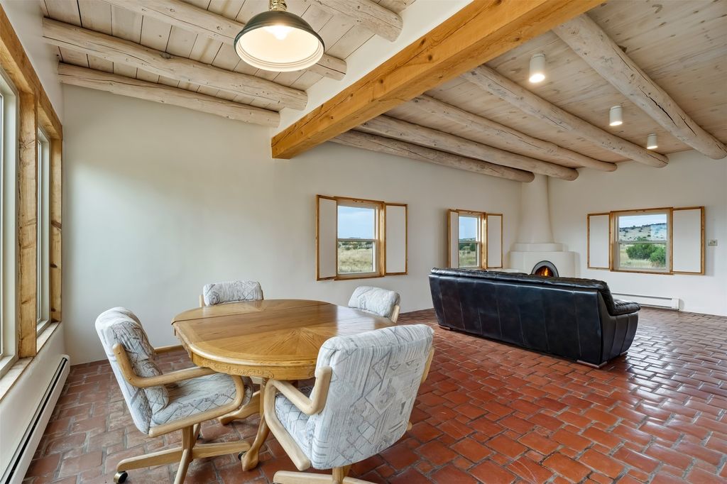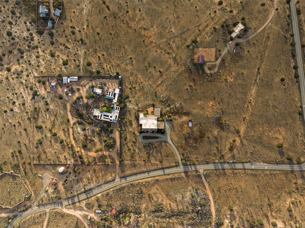 In the quaint village of Galisteo lies this gracious and majestic home with adjoining 5 acre lot, for a total of 10 acres, known as 'Hacienda del Sol." One hundred years ago was the site of the Old Galisteo School House. The original 1886 bell and corner stone 1938 were placed within the walls of this present day home. Built atop of a gentle hill with stunning views of the Galisteo Basin, Sangre de Cristos and Jemez Mountains along with huge white puffy cloud formations in a brilliant blue sky greet you everyday. Large rooms with cathedral ceilings flooded with light, sculptured fireplaces, oak and pine floors with 10 foot elegantly carved doors delight the eye upon entering. Screened in, is a lovely outdoor patio with vast, distant views. A gallery hallway runs the length of the house craving art, paintings, photographs, memorabilia. A chef's kitchen with a six burner stove, center islands, prep sinks has everything one would want. An elegant dining room with arched walls, subtle lighting, and carved cabinets allow for many guests or small intimate settings. Three Bedroom suites each with fireplaces and luscious bathrooms are perfectly placed for privacy. An attached "casita" with kitchen and bath is off one of the wings of the home. Outside, there is a circular, walled patio area for summer gatherings and moon lit nights. Included in this fabulous property is a blue gate opening up to an adjoining 5 acre parcel of vacant land accessed off of Camino San Cristobal used for pleasure or as additional acreage for another home, studio, horses, and imagination. Dream on...