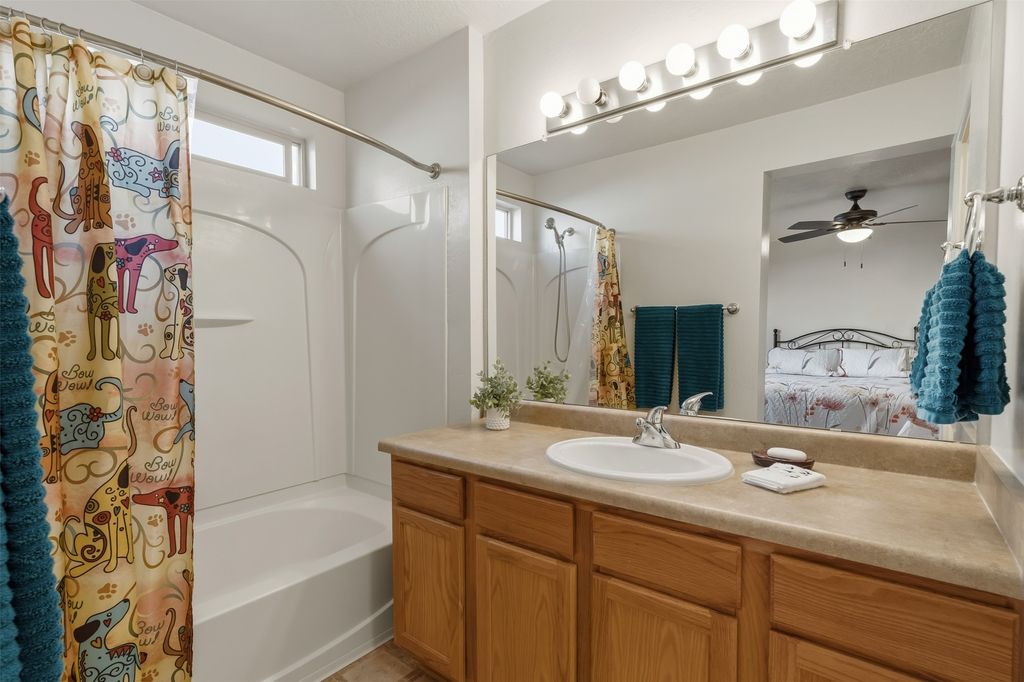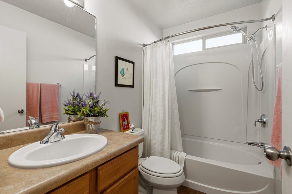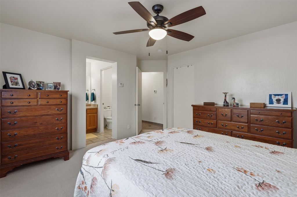 Delightful 2br 2ba one level home in Rancho Viejo just steps from hiking and stunning views of the Sangres. This darling 1024 square foot casita has a new roof, new carpet in bedrooms and new paint. Brick patio with covered portal for outdoor year-round living and Xeriscaped yard. 2 car direct-entry garage. If you're looking for low-maintenance and high-comfort, this move-in ready space has your name on it!