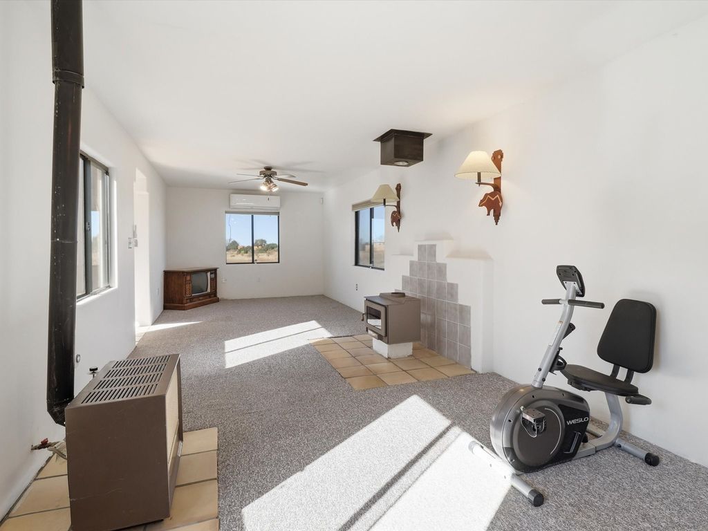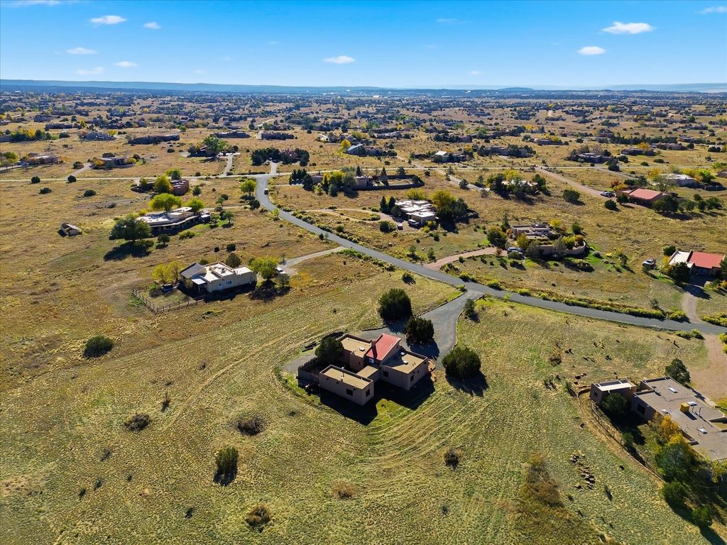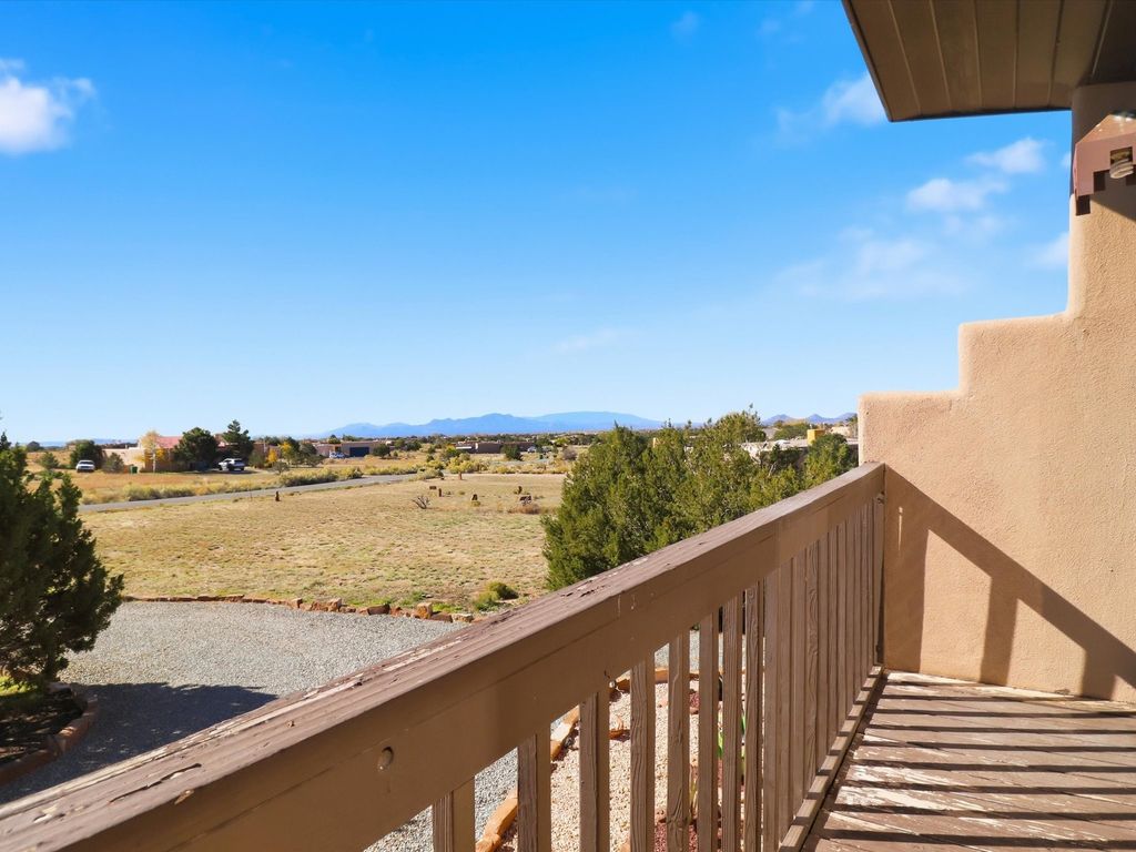 A serene Santa Fe retreat in the coveted Eldorado community. This beautifully designed 3-bed, 2-bath residence sits on 1.64 acres with sweeping mountain views and the peaceful rhythm of desert living. Light-filled interiors feature high ceilings, tile floors, and a Kiva fireplace that adds warmth and timeless Santa Fe charm. The kitchen and living spaces open to a private patio perfect for entertaining or quiet starlit evenings. Experience tranquil country living just minutes from Santa Fe's Plaza, galleries, and fine dining. The spacious lot offers room to garden, relax, or expand. A perfect blend of comfort, elegance, and Southwest beauty, schedule your private tour today and see it for yourself.