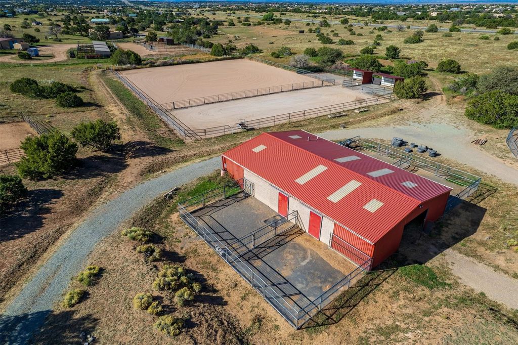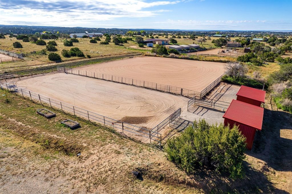 A small ranchette offering a great location and features. This property is situated directly across from Eldorado, offering convenient access to various community amenities. It is serviced by Eldorado water and natural gas, ensuring reliable utilities. The home is also a short distance off the highway, providing easy access to town. The home itself features a split floor plan and an open-concept living, dining, and kitchen area, making it ideal for comfortable living and entertaining. It also has southerly mountain views. For equestrian enthusiasts, this property is particularly well-equipped with a 2400 sq ft center aisle, block and metal 4-stall barn with attached piped paddocks, crusher fine footing, automatic heated waterers, a tack room, a hot water wash rack, hay storage, and a feed room with a sink and toilet. Additionally, there is a piped rail sand arena and 4 turnouts with run-in sheds. The property also a detached unheated workshop/studio with a carport and storage. No HOA.