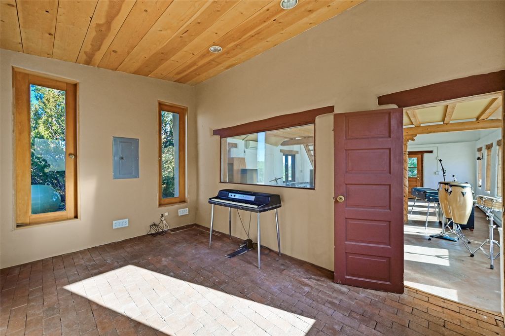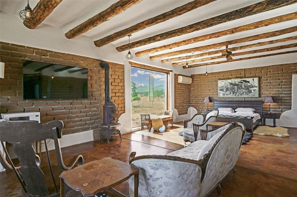 Welcome to this remarkable property that exudes the rustic charm of the old west and features the adobe walls that distinguishes true Santa Fe from the rest! Settled on just under a 10 acre naturally landscaped parcel of land with dreamy mountain views and populated with Pinon and Juniper Trees throughout, this property is the one you've been waiting for. The one bedroom one bath private main home boasts an open concept floor plan and 1,500+/- heated square feet. In addition to the main home there are three separate studios for your use and imagination! A 1,000 +/- sqft adobe with one bath would be great for your guests. The 985+/- sqft "music studio" with one bath attracts great natural light and contains a loft up above the main level. The cute 300 +/- detached studio is just off of the walled courtyard and next to the outdoor hot tub. Another great feature and added benefit to this property is the designated RV parking and hookup area! Come and own your own unique perspective of the gorgeous sunrise and sunset views that Santa Fe is known for from this one of a kind property. The property is fully-fenced and is about a 20 minute drive from the Santa Fe city limits.
