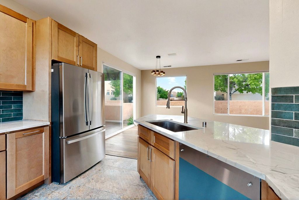 Discover this newly listed gem in Santa Fe featuring three bedrooms and two bathrooms, thoughtfully renovated for modern living. The home boasts elegant hard flooring throughout main areas and fresh paint that creates a bright, welcoming atmosphere. The kitchen shines with granite countertops, new cabinetry, convenient pantry, and sleek stainless steel appliances"”perfect for culinary enthusiasts. Both bathrooms showcase stylish blue cabinetry complemented by contemporary tiled showers. A traditional kiva-style fireplace adds authentic Southwestern character while providing cozy warmth during cool evenings.Conveniently located near amenities, this move-in ready home offers the perfect blend of comfort and style for your next chapter.