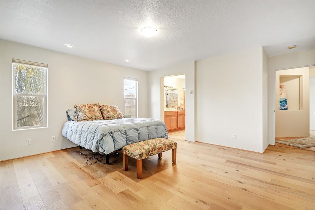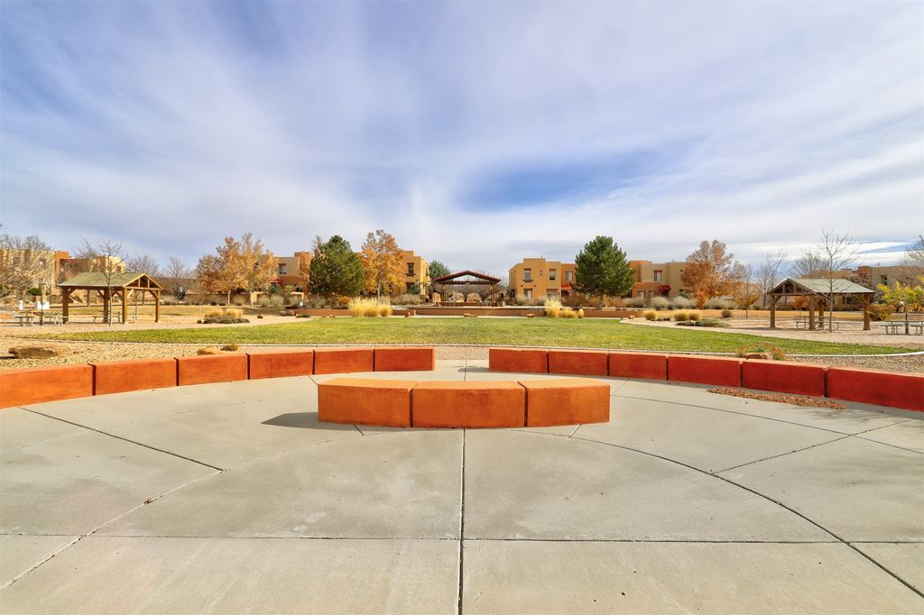 Marvelous Open Flowing One-Level Floorplan with Abundant Natural Light! Spacious Great Room with Kiva-style Gas FP Welcomes you Home! Fabulous Sunny Kitchen for the Chef! Tile Counters & Backsplash! SS Appliances-Gas Range/DW/Refrigerator! Double Door Large Pantry closet! Freestanding Butcher Block Island! Glass Patio Doors flow into the Spacious Yard with a Covered Portal for Dining Al Fresco! View is of a small grassy park! The Dining Room was designed as a Flexible Space. Would you prefer an Artist Studio? Or a 4th Bedroom? Or possibly a Home Office? Great Space to create whatever you desire! The Owner's Suite has plenty of room, measuring 15'7" X 14 7" and boasts a 2024 remodeled bath, complete with an oversized Custom Tile Shower with a Pebble floor and Raindrop Shower Head! Large Walk-In Closet! Tens of thousands $$$$$ in Recent Upgrades and Updates! 2024 Gorgeous Engineered Hardwood Flooring in All Bedrooms + Flex Space! Fresh Decorator Paint! Brand New Designer Lighting! Fabulous Remodeled Owners Bath! Water Heater replaced 2024! No carpet! Tile Flooring in the Kitchen and Baths! This Fantastic Home Lives Larger than the actual footage! The Home was built on A PREMIUM LOT, adjacent to a Small Park, offering a green, open space view and a sense of Privacy! A larger park with a playground is nearby! 2 Car Garage, accessed at the rear of the home. The In-Floor Radiant Heat Boiler was replaced in 2019, as indicated by the Approved Tag on the boiler! 3 or 4 Bedroom with Flexible Design! Rancho Viejo is a Master Planned Community with numerous Parks and Miles of Trails to enjoy the NM Sunshine! Ideally located at the South End of Santa Fe with easy access to the Santa Fe Community College, Schools, and Restaurants! Presbyterian Hospital and Shopping are also nearby! 18 Minutes to the Conde Nast Award Winning Destination Spa-Ojo Santa Fe! Only 22 Minutes to the Santa Fe Plaza! A truly special place to call HOME!