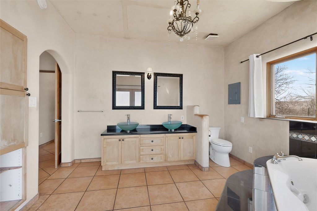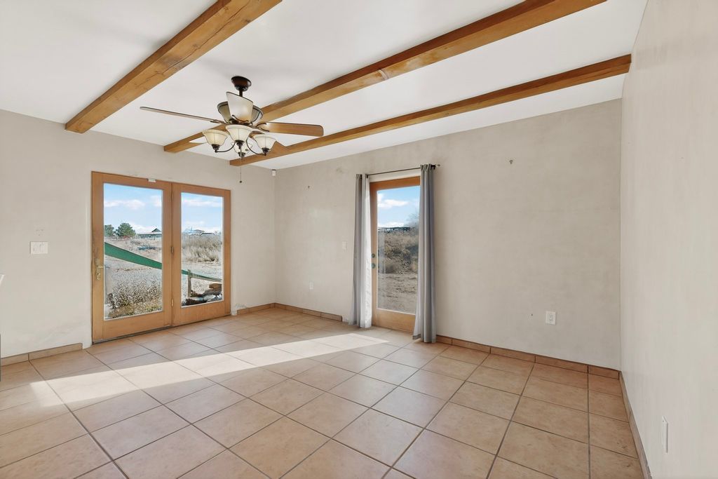 Experience Northern New Mexico living at its finest on this exceptional 2.5-acre property featuring a spacious 4-bedroom, 2¾-bath, 2,800 sq ft main home and a fully equipped 3-bedroom, 2-bath manufactured guest house. The impressive, custom-built main residence highlights timeless Southwest charm with plaster walls, vigas, a kiva fireplace, beautiful artistic touches, and warm, inviting living spaces. Sustainable living is built right in with a fully paid-off solar panel system, offering energy efficiency and long-term savings. Outdoors, enjoy incredible views of the mountains, peaceful moments by the tranquil koi pond, or explore the expansive grounds. You can also take advantage of the versatile detached shop/garage"”ideal for projects, hobbies, or additional storage. An exceptionally productive private well provides reliable water for both homes and the acreage, enhancing the property's self-sufficiency. Potentially providing as high as 40 to 50 gallons per minute, the pump has been governed to produce at 25 GPM, which easily accounts for any residential, or even livestock need. Additionally, an in-ground 1200 gallon tank provides water to the pressure tanks through an automatic softener. Water is absolutely not an issue at this incredible property. Perfect for multi-generational living, rental income, or extended-stay guests, this rare offering blends comfort, functionality, ample space, and true Southwest appeal. Schedule your private tour today!