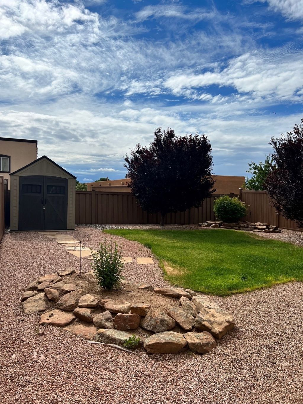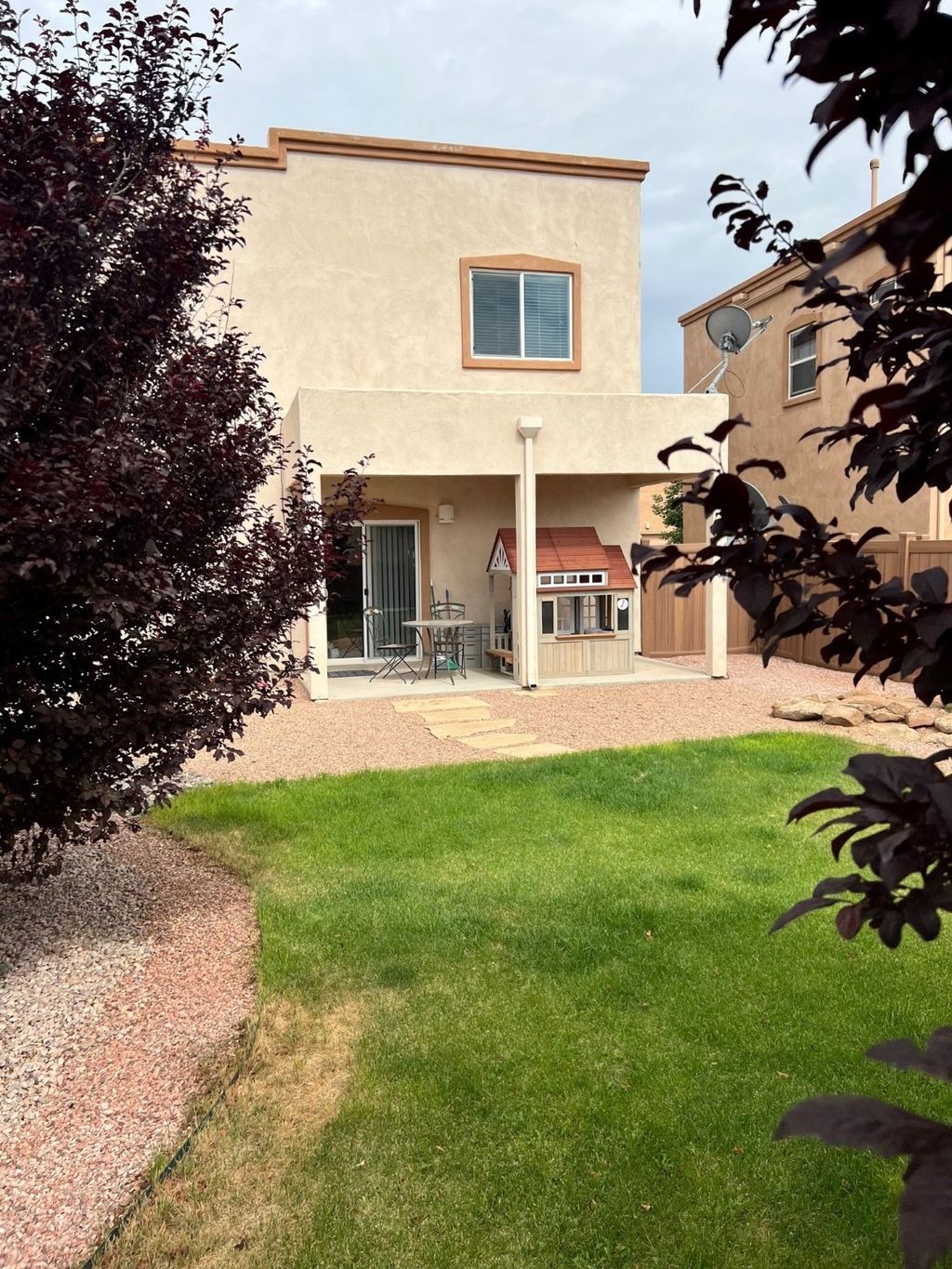 Welcome to this sweet and inviting two-story single-family home in the highly desirable Turquoise Trail community. This cozy yet well-designed residence offers 3 bedrooms, 2.5 bathrooms, and a thoughtful layout that provides warm, welcoming spaces ideal for everyday living. Enjoy the comfort of central refrigerated air, the convenience of front-yard drip irrigation, and the peace of mind of a fully wired security system. Step outside to a lovely backyard, perfect for relaxing evenings, entertaining friends, or hosting weekend barbecues. Just one minute from 599 and I-25, this location offers quick accessibility to Albuquerque, downtown Santa Fe, and Los Alamos, all while maintaining a peaceful, homey atmosphere. Homes in this neighborhood rarely come on the market, thanks to its charm and amenities. Turquoise Trail offers residents four community parks, a volleyball court, playgrounds, walking trails, and gorgeous scenic views, creating a lifestyle that blends comfort, convenience, and outdoor enjoyment. This home is perfect for anyone seeking a welcoming space in an unbeatable location. Move quickly"”this one won't last.