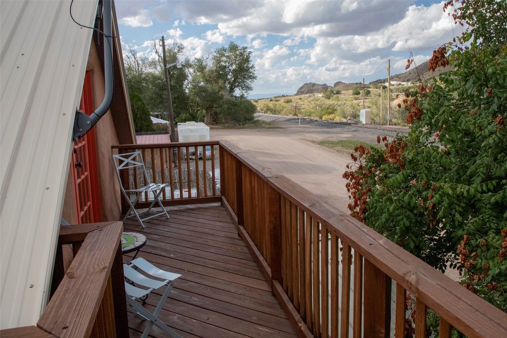 10 Rail Road/45 Main Street is up for sale. This historically rich property sits on the site that was home to the first telegraph and printing office that connected early residents of Los Cerillos with the rest of the world. Predating Columbus , the area has been the the source of the turquoise that traded as far north as modern day Canada, and south, deep into Central America. Later discoveries of gold, silver, coal, and other precious minerals brought in miners by the thousands. A short drive from Santa Fe on the The Turquoise Trail, the residence at 10 Rail Road is a gleaming facet of this lustrous history. Sure to delight those with a taste for adventure, the property also includes an undeveloped address abutting Main Street- ready for a savvy buyer to create with. Lovingly renewed by skilled area craftsmen, and in keeping with the neighborhood flavor, noteworthy emphasis has been placed in the use of original and reclaimed materials while delivering the overdue updating and renovation that leaves the home ready to fulfill the needs of the modern era. Substantial upgrades include new electrical from top to bottom, new plumbing from the meter to the fixtures, a Jotul wood stove and 3 unit GE minisplit system, and new pitched metal roofing to shed our summer monsoons with ease. The layout is conducive to living and working, with the kitchen, bathroom, dining, living room, and two bedrooms downstairs. Upstairs holds the third bedroom/flex room with french doors opening to a deck overlooking the historic railroad that helped shape the region. The Amtrack passenger train still runs twice a day, and the view out to the Cerillos Hills State Park is breathtaking. The back lot with its own county address, is ample, large enough to split off for separate development or to add complementary structures to the existing property. Studio? Workshop? Garages? Gardens? Gallery? With your vision, this property will continue to flourish.