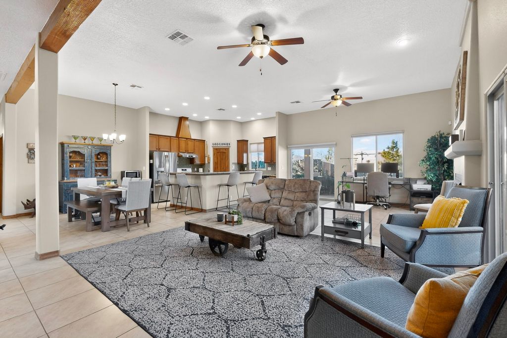 Welcome to this enchanting home in La Pradera. Built in 2018 it is designed for modern living. The open concept layout is enhanced by high ceilings, creating an airy and inviting atmosphere. The chefs kitchen features granite countertops and a walk-in pantry that is perfect for culinary enthusiasts. The primary suite is thoughtfully separated from the other bedrooms, allowing for privacy and comfort. Additional features include a tankless water heater, soaking tub, separate shower and spacious walk-in closet. Enjoy the serene outdoor living space which includes a private sanctuary with a swinging daybed, ideal for relaxation. With easy commuting to Los Alamos or Albuquerque and nearby walking trails and open space, this home is a perfect blend of convenience and tranquility.