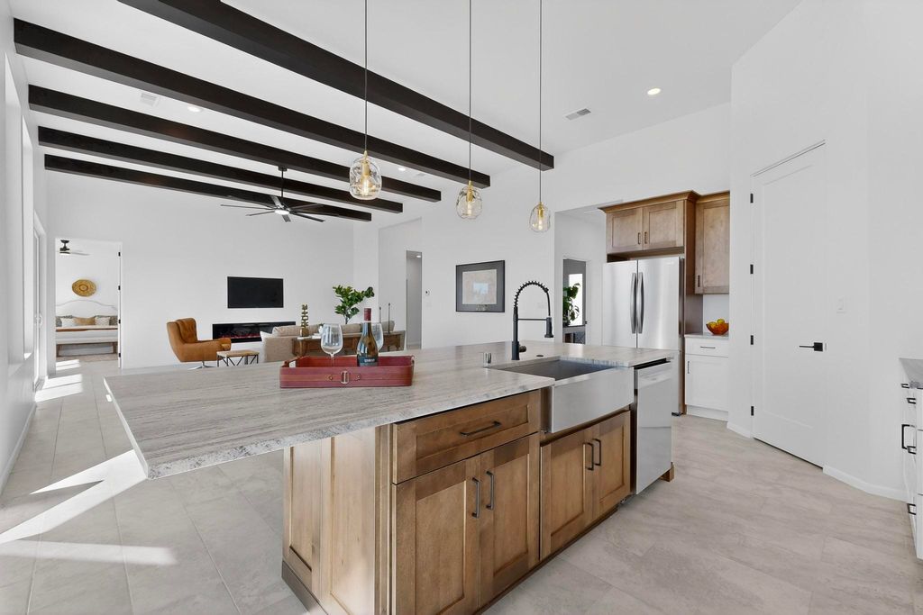 The modern kitchen includes a beautiful large granite island, large walk-in pantry, that flows beautifully into the living and dining areas, very functional and ideal for entertaining. Oversized windows and sliding glass doors invite abundant natural light and creates a seamless connection between indoor comfort and outdoor enjoyment; meanwhile framing the surrounding landscape like living artwork.