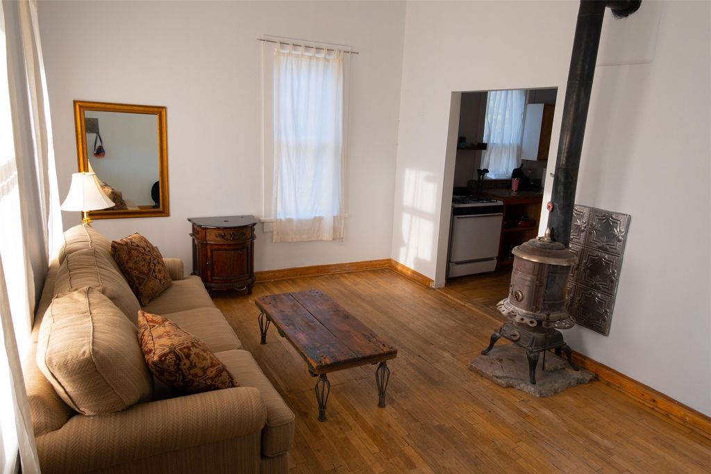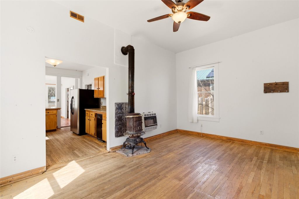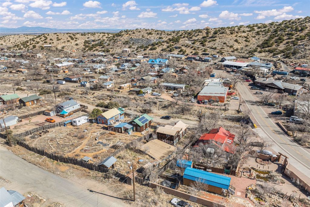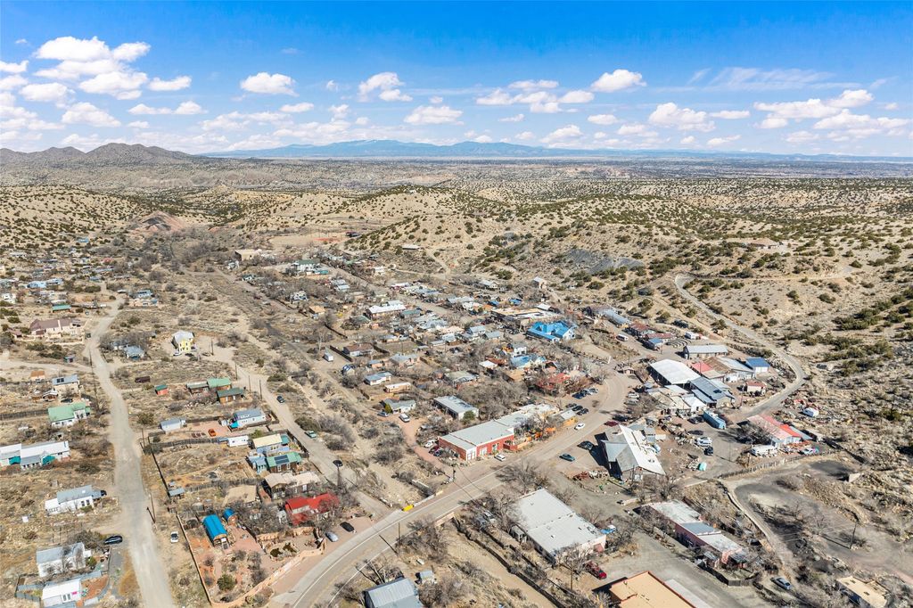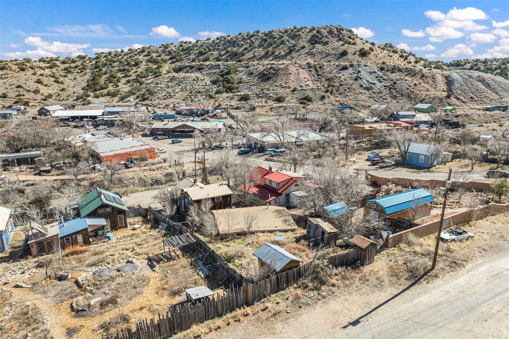 This inviting Madrid townsite property blends historic character with modern updates, featuring an upgraded kitchen and a detached guest house complete with a full bath and kitchenette. It's an ideal fit for a homeowner seeking rental income, a private studio, or a strong investment opportunity. Originally one of Madrid's miner cabins, the main home has been lovingly restored and thoughtfully expanded to include two upstairs bedrooms. The living room and kitchen retain their original hardwood floors, complemented by a wood stove, gas range, granite countertops, and a passive-solar dining area with Saltillo tile. Newer metal ProPanel roof. The detached casita"”an original stone-and-stucco structure"”sits well behind the main house with its own private access and parking off Backroad. It is currently rented and equipped with separate sub-meters and a second water co-op hookup, offering immediate income potential. The main house includes a well-planned laundry room with added storage, while the guest house features its own stackable washer/dryer. Additional storage is available in the outbuilding and walk-in crawl space. A fenced yard provides shade and a secure space for pets. From the classic front porch, enjoy views of the vibrant historic village and the scenic Turquoise Trail. The location offers easy walkability to restaurants, galleries, and the general store, with Cerrillos State Park nearby and convenient access to both Santa Fe and Albuquerque