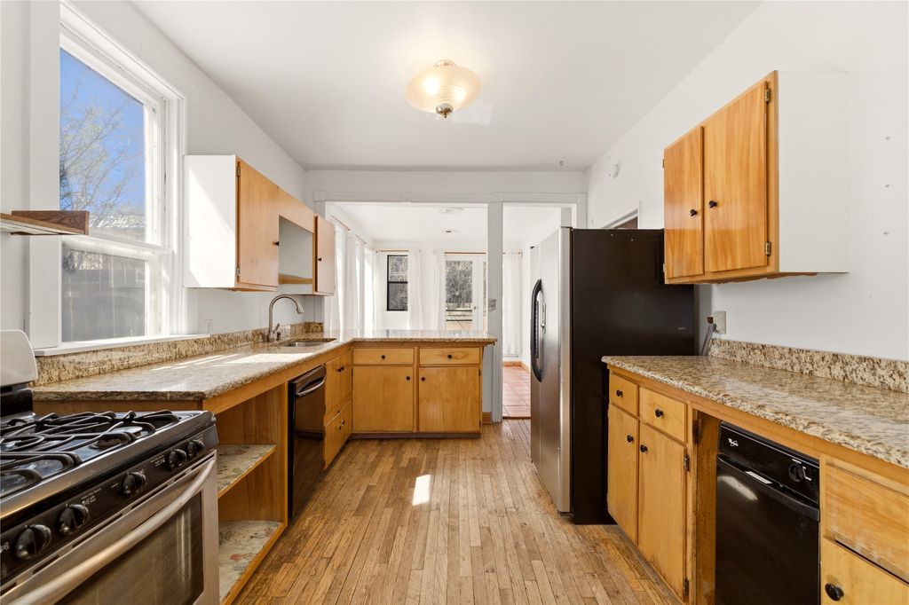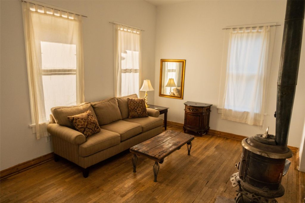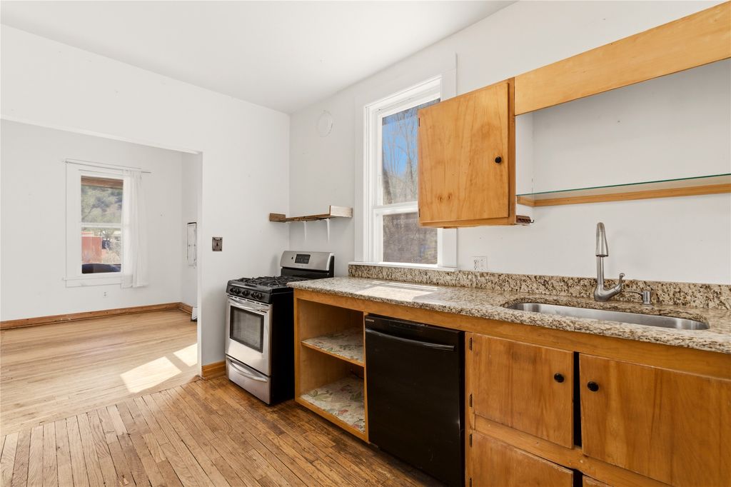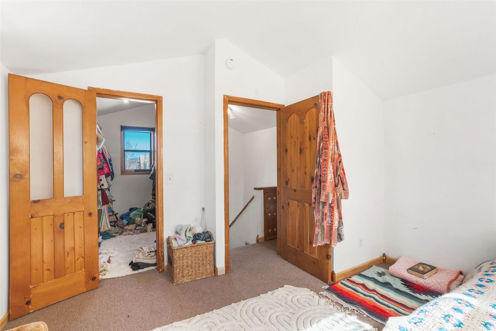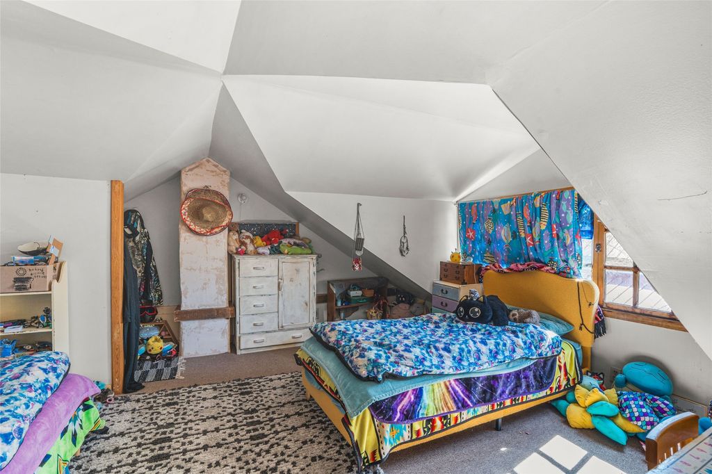This inviting Madrid townsite property blends historic character with modern updates, featuring an upgraded kitchen and a detached guest house complete with a full bath and kitchenette. It's an ideal fit for a homeowner seeking rental income, a private studio, or a strong investment opportunity. Originally one of Madrid's miner cabins, the main home has been lovingly restored and thoughtfully expanded to include two upstairs bedrooms. The living room and kitchen retain their original hardwood floors, complemented by a wood stove, gas range, granite countertops, and a passive-solar dining area with Saltillo tile. Newer metal ProPanel roof. The detached casita"”an original stone-and-stucco structure"”sits well behind the main house with its own private access and parking off Backroad. It is currently rented and equipped with separate sub-meters and a second water co-op hookup, offering immediate income potential. The main house includes a well-planned laundry room with added storage, while the guest house features its own stackable washer/dryer. Additional storage is available in the outbuilding and walk-in crawl space. A fenced yard provides shade and a secure space for pets. From the classic front porch, enjoy views of the vibrant historic village and the scenic Turquoise Trail. The location offers easy walkability to restaurants, galleries, and the general store, with Cerrillos State Park nearby and convenient access to both Santa Fe and Albuquerque