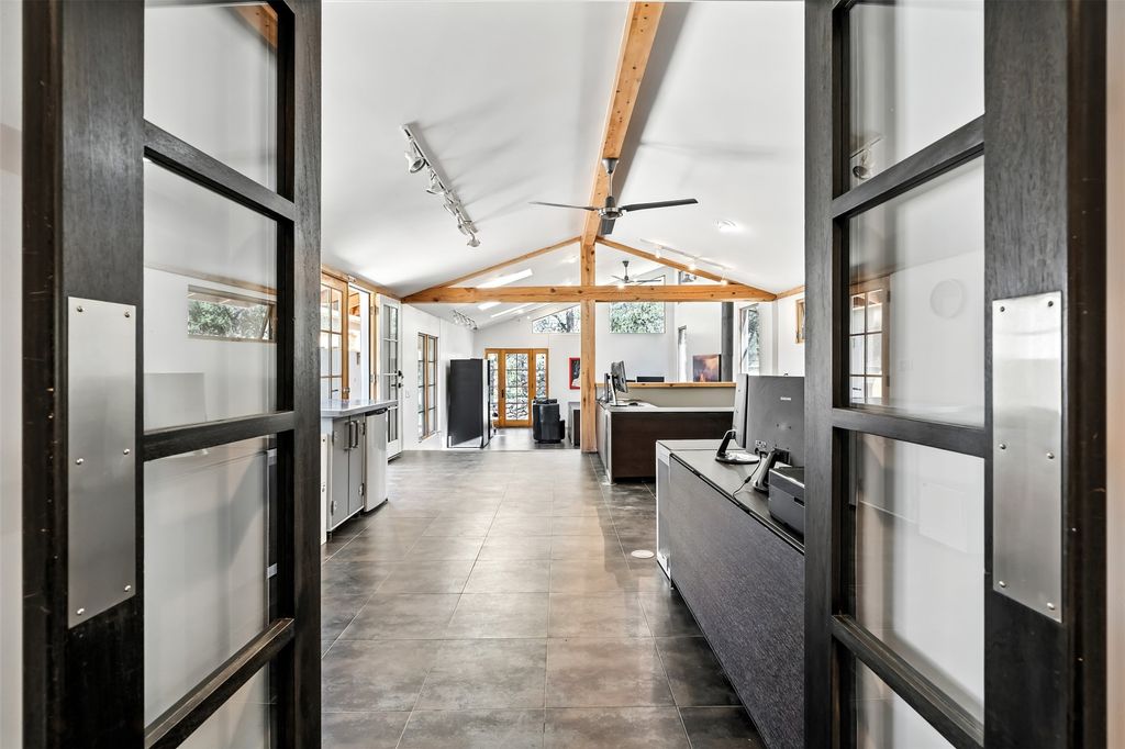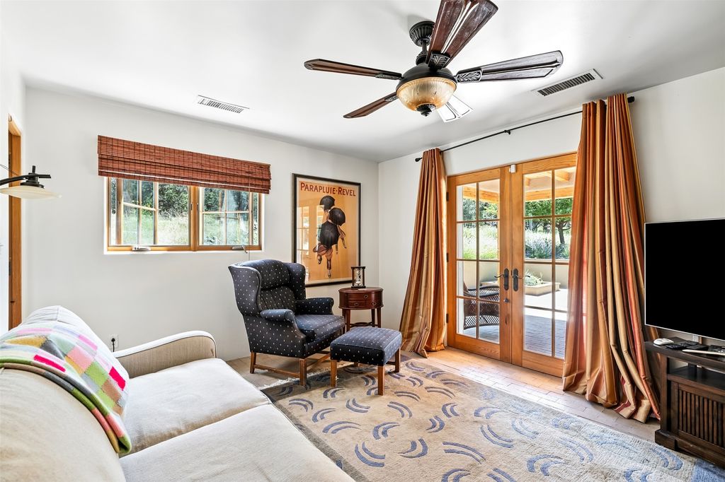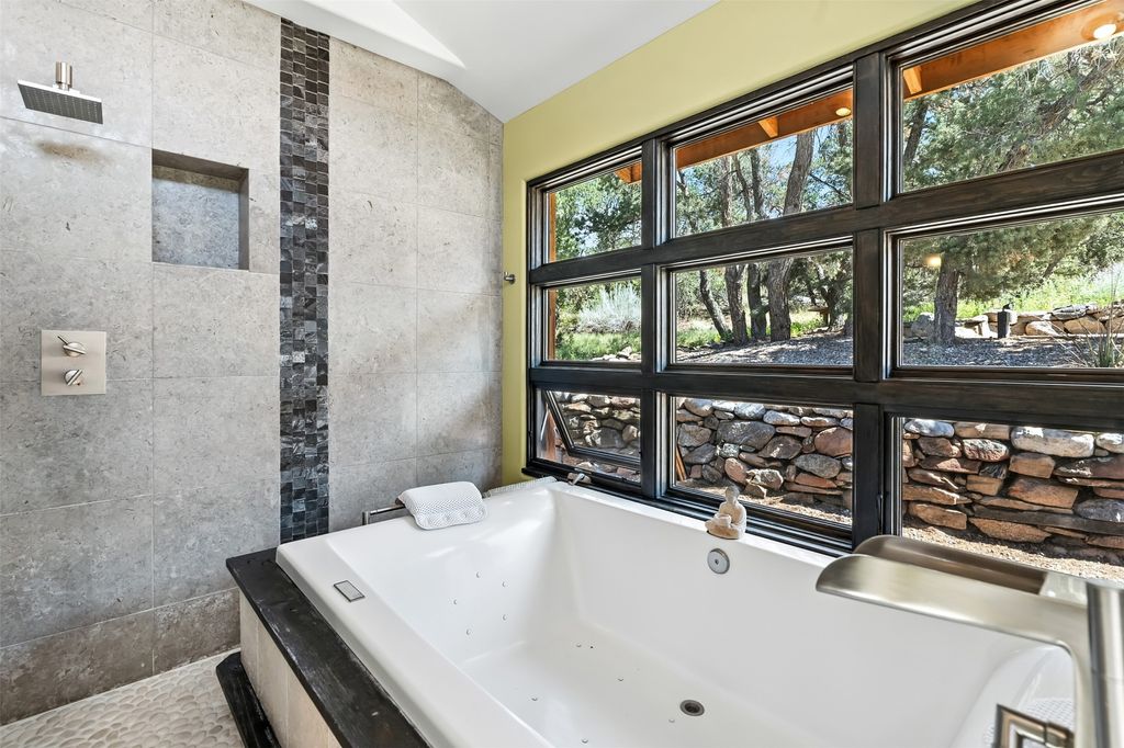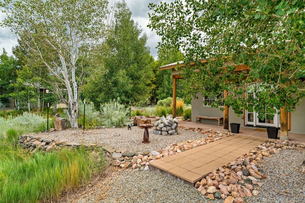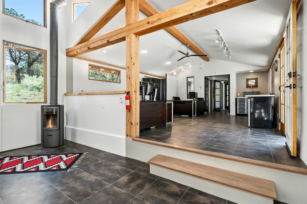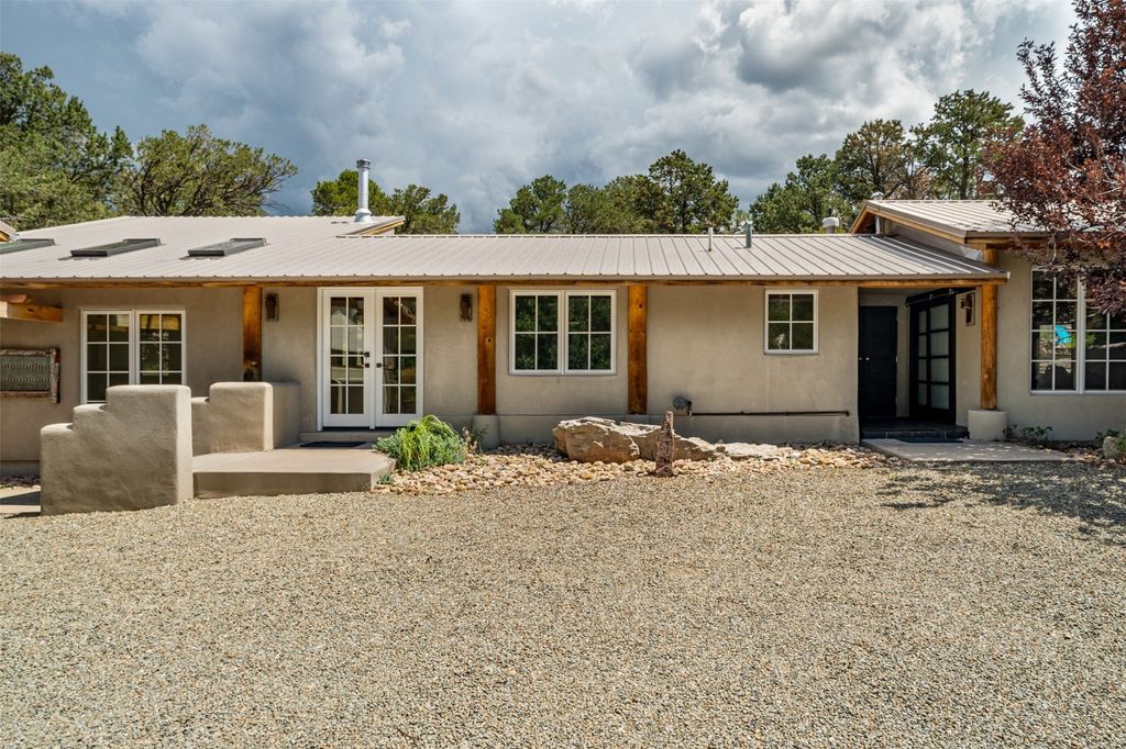 LIVE, WORK, ENTERTAIN, in your own secluded sanctuary located on 7.08 Sunlit Hills acres. 10 Sabina Lane is a sophisticated & contemporary COMPOUND offering a wide variety of living & working spaces in a stunning pastoral setting, 15 minutes from Santa Fe. MAIN HOUSE - 2,187sqft open concept Great Room w/beamed cathedral ceiling, fireplace, Chef's kitchen w/granite counters, high end appliances, 2 spacious bedrooms w/en suite bathrooms, laundry area, 5 sets of French door leading to 58 foot long covered portal. GUEST SUITE - 530sqft is steps from the main house & offers an inviting bedroom, spa inspired bathroom, custom tiles, soaking tub, is adjoined by a private tranquil terrace. STUDIO/OFFICE - 994sqft amazing work space with vaulted ceiling, view windows, areas for an office, art or other work related spaces, powder room & covered portal entry. One would never need to leave the property to conduct all their business or artistic work. CASITA - 683sqft Set apart from the main house, the casita has a full kitchen w/stone counters, kiva fireplace, covered portal, stackable washer/dryer. The casita has produced additional income as an Air B&B GARAGE - 60 sqft Fully finished, 2car capacity, storage areas. GAZEBO -196sqft An inviting space away from the home for meditation & relaxation. PAVILION -241sqft Wonderful retreat area w/fireplace, banco seating, ceiling fan, designer lighting. The property is accessed through a gated entry, a graveled driveway w/recently added retaining wall. Many additional aspects - electric convection stove top, extensive & significant landscaping,10 zone irrigation system,2 owned propane tanks (500 and 250 gallons), 5 fireplaces, an amazing flower filled meadow, healthy pinon, aspen and juniper trees, eclectic river rock pylons, antique wooden bathroom cabinet, a wealth of ceiling fans & mini split in the primary bedroom. For folks seeking a destination, full time live/work situation, please consider 10 Sabina Lane.