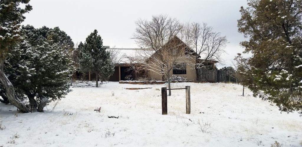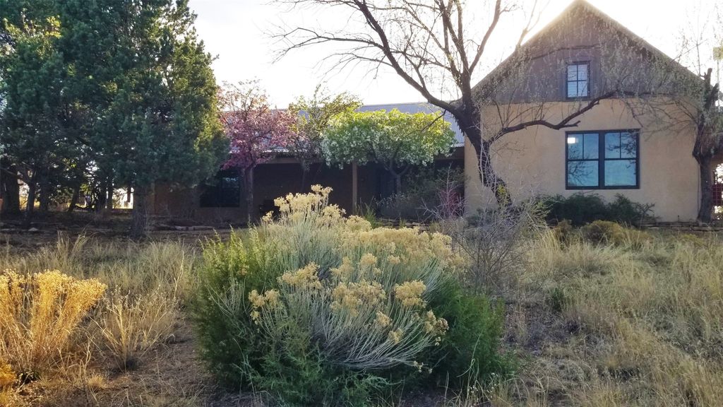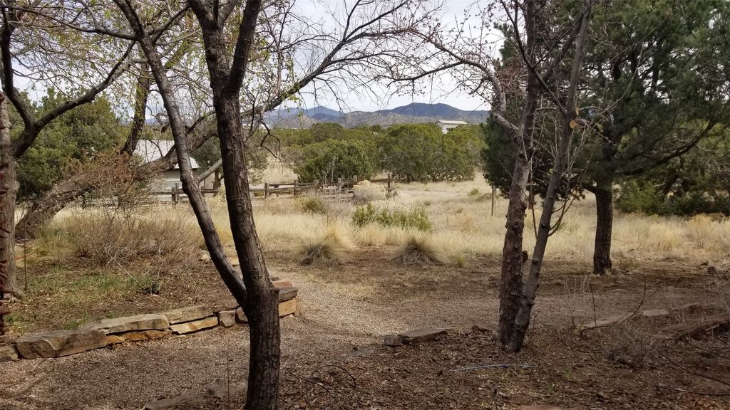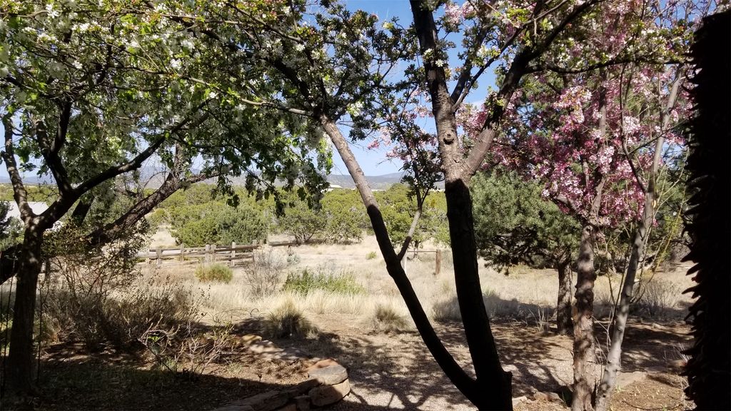 Private country retreat, easy drive to town, a find. This Northern New Mexico sweetheart house on exquisite land has mountain views, a well-kept open barn and corrals and pens. No horses? Park your RV securely in the spacious newly sided barn with heavy-duty remote-operated metal doors or set it up for wonderfully lit workshop space. Got dogs? Lots of room to run in several fenced areas. Love to hike? Great adjacent trails - including the Rail Trail and Arroyo Hondo Open Space trails, no driving necessary. Dining out? Nearby options and just a 15-minute hop to all downtown Santa Fe offers. Love the cathedral ceiling with beams (yes, living room), remodeled bathrooms with custom tiles and sinks, covered porches front-and-back. Fresh paint throughout, new on-demand water heater, mini-splits, upgraded driveway and irrigation systems are just some of the improvements made by current owners that you will appreciate. This property is country living with the flare of style and oozes potential for the existing structures. See for yourself and fall in love.
