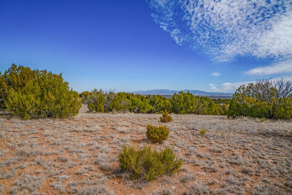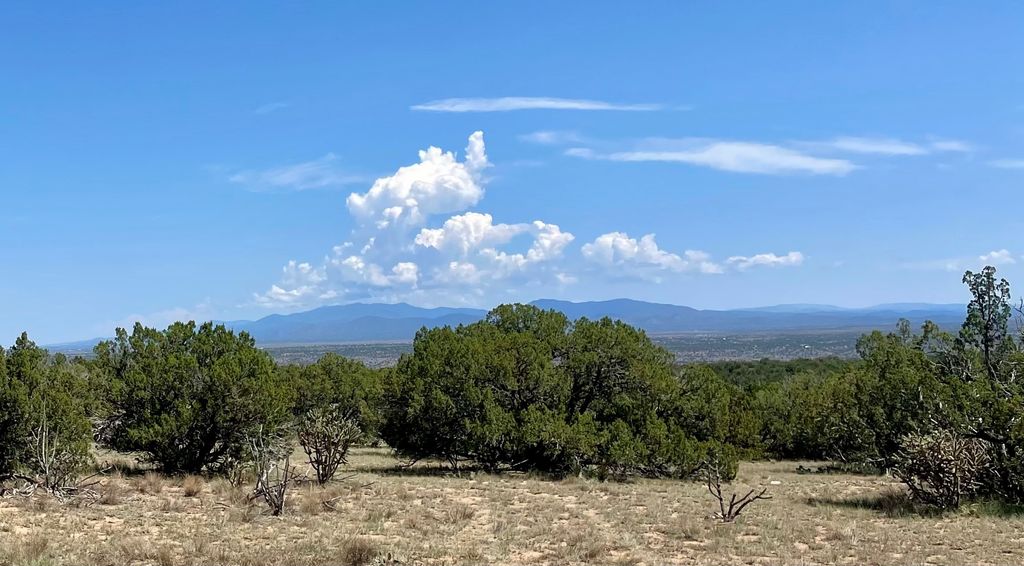 On an elevated ridge above the Galisteo valley, twenty miles from Santa Fe, this forty acre parcel offers mountain views in all directions. In a gated neighborhood with underground power, well-maintained gravel roads, and no HOA, the lot has a roughed in driveway, multiple flat building spots, and a drilled and cased well. Dramatic arroyos provide places to explore, and the neighborhood is welcoming to equestrians. Quiet, private, with spectacular sunsets and vibrant night skies, this lovely lot is ready for your high-desert home.