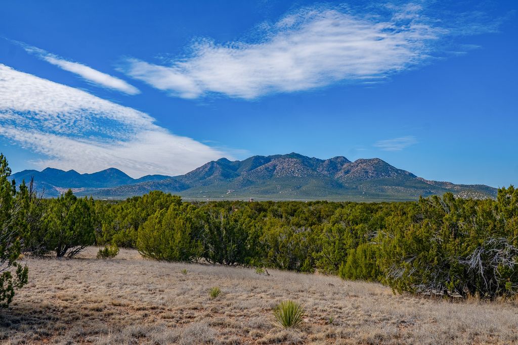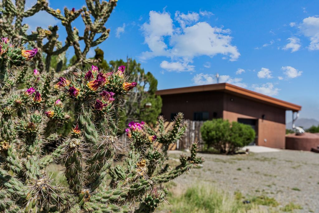 Modern home on forty acre lot with adjacent vacant forty acre lot with driveway and well. For those who want space to stretch out, or multiple lots to build a family compound on, this offering has it. Stretching 9/10's of a mile at its longest, there's room for on the property hiking, riding, or mountain biking. The home features contemporary style in a high-desert setting with breathtaking mountain views in the foothills of the Ortiz Mountains. Fully self-reliant, it boasts utilities provided by solar, wind, and water catchment, with public electric lines available on the street. The adjacent lot has a drilled and cased well, a roughed in driveway, and more of the spectacular views the area is known for. The location offers easy access to town on well-maintained roads within a gated community with no HOA. Located just 21 miles from Santa Fe and near dining and entertainment options in Madrid and Cerrillos, this offering provides perfect retreat with room for future development and a move in ready home. 49 Blue Agave (MLS 202502557) and 65 Grenfell Ranch (202600867) are also offered for sale separately.