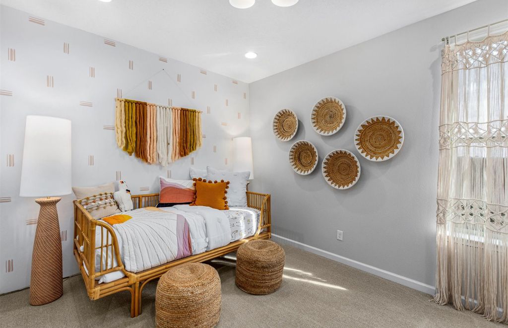This cozy ranch-style home offers a perfect blend of comfort and elegance. The open-concept kitchen features a large island, upgraded 42" cabinets, and gorgeous granite countertops, making it an entertainer's dream. Natural light floods the space through ample windows, enhancing the airy and inviting atmosphere. Enjoy peaceful mornings or relaxing evenings on the spacious covered porch. The thoughtfully designed split floor plan ensures privacy and comfort, while 2-toned interior paint and upgraded flooring add a touch of sophistication throughout. The front courtyard is included! Located in the new Pulte Esencia Master Planned Community!