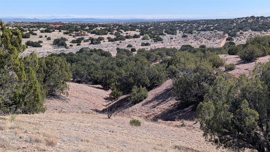 Magic exists off the Turquoise Trail. Located down Haozous Rd, and just past the Allan Houser Sculpture Garden are 6+ beautiful acres of rolling topography and stunning mountain views with a private hilltop building site. Driveway already roughed in.