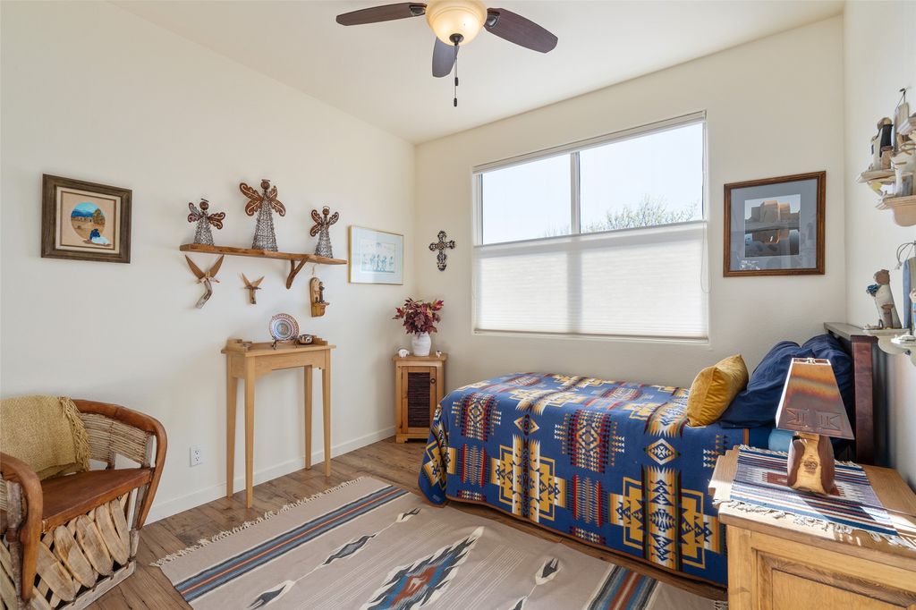 Nestled in the highly sought-after Rancho Viejo community, this beautifully maintained home offers a seamless blend of comfort, ease, and timeless Santa Fe style. With 3 bedrooms and 1 3/4 baths, the layout is both functional and inviting while thoughtfully designed for both everyday living and effortless entertaining. From the moment you arrive, you'll appreciate the pride of ownership reflected throughout. The home is truly move-in ready"”allowing you to settle in and immediately enjoy. Inside, the living spaces feel warm and welcoming, with a charming gas fireplace that creates a cozy focal point for gathering and quiet evenings alike. The thoughtful layout provides comfortable flow between living areas, while the bedrooms offer flexibility for guests, a home office, or creative pursuits. Step outside to a sweet sitting space"”an ideal space for morning coffee, or simply taking in the peaceful surroundings. This seamless indoor-outdoor connection enhances the home's livability and reflects the essence of Santa Fe design. Rancho Viejo residents enjoy miles of walking trails, and open space"”all just a short drive from the cultural richness, dining, and galleries of downtown Santa Fe. Whether you're seeking a full-time residence, a lock-and-leave retreat, or an investment in one of Santa Fe's most beloved neighborhoods, this truly special home offers exceptional livability.