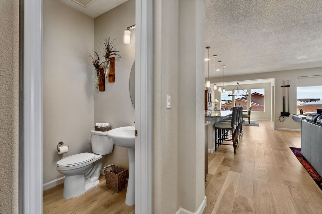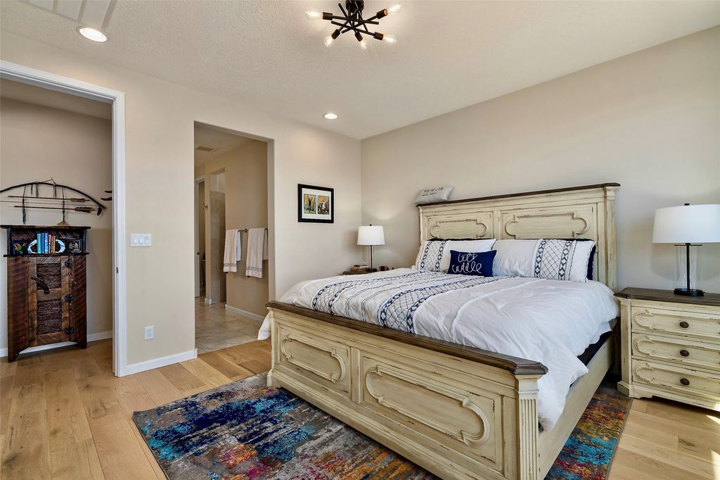 Are you are looking for a tremendous value on a beautifully upgraded and completed Pulte Parklane model? Look no further! 41 Avenida Colibri is a lovely single-story home which features a contemporary, open-concept floor plan perfect for today's living.The home features a spacious kitchen with large center island, bringing joy to cooking and entertaining. The great room/living room features tall ceilings and a dramatic floor-to-ceiling tiled fireplace! The owner's suite bathroom exudes luxury and is replete with gorgeous finishes similar to any 5 star, spa-like retreat. There are 3 spacious bedrooms + office/den or flex space. The full 3-car, tandem garage is 576 sq.ft affording space for not only vehicles, but storage as well! BEST OF ALL- Why spend extra time and money finishing your backyard, installing custom window treatments and light fixtures, tiling your fireplace wall, replacing carpet, or painting and epoxying your garage, when you can move right into a fabulous turnkey home where every upgrade has already been thoughtfully completed? Step into this nearly new, barely lived-in home, featuring gorgeous engineered hardwood flooring throughout"”no carpet anywhere, just beautifully upgraded floors in every room. Bathed in natural light, the living spaces seamlessly connect to the outdoors, offering a warm and inviting atmosphere for everyday living. Embrace the outdoor lifestyle with a custom-built firepit area, perfect for relaxing or entertaining guests as you take in enchanting Santa Fe evenings under the stars. Meticulously maintained and move-in ready, this home is designed for comfort, style, and effortless enjoyment. This home is like new with little use, but is fully broken in! A must see!